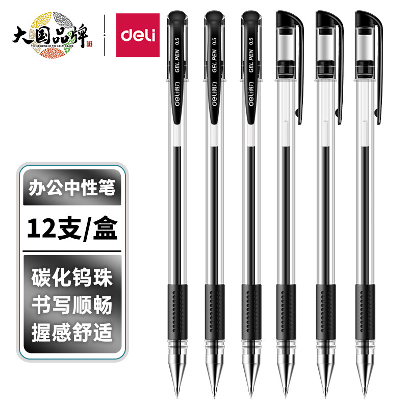 得力(deli)0.5mm办公中性笔 水笔签字笔 12支/盒黑色34567