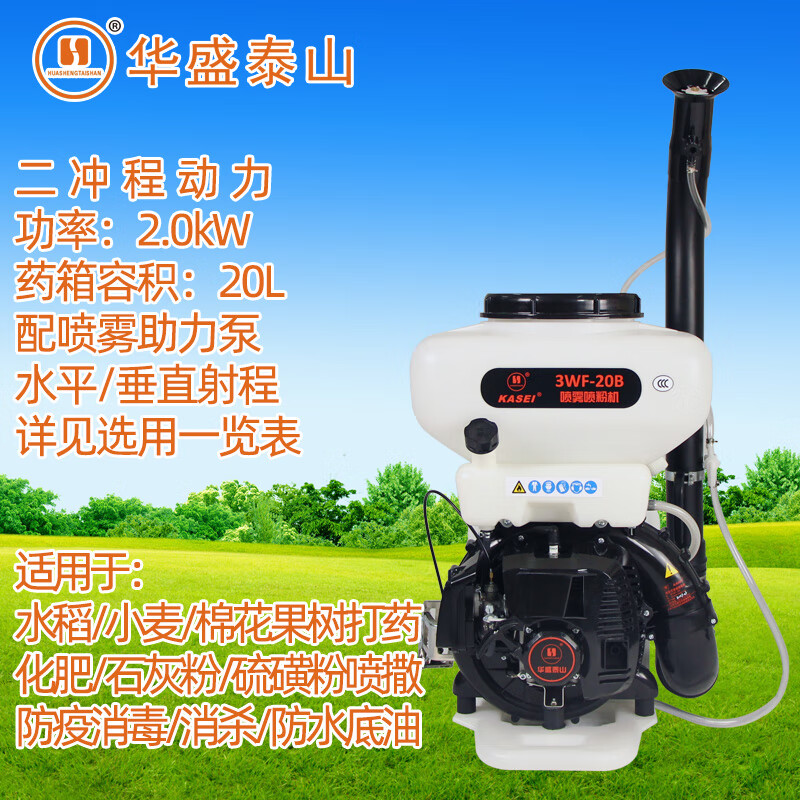 华盛泰山机动喷雾器农用背负式小型高压汽油喷雾机桉树喷粉机施肥机扬肥器消毒果树槟榔打药机消杀弥雾机 3WF-20A(二冲程20L喷粉状态)带喷雾泵