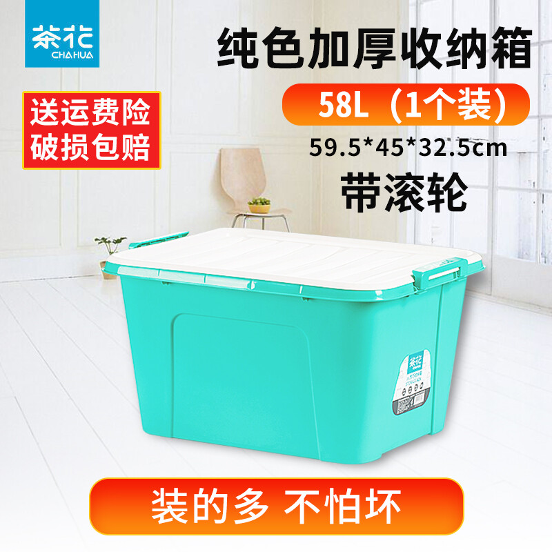 茶花悦巧收纳箱儿童玩具整理箱25L 35L 58L 68L加厚塑料加厚塑料储物箱 绿色 58L 一个装