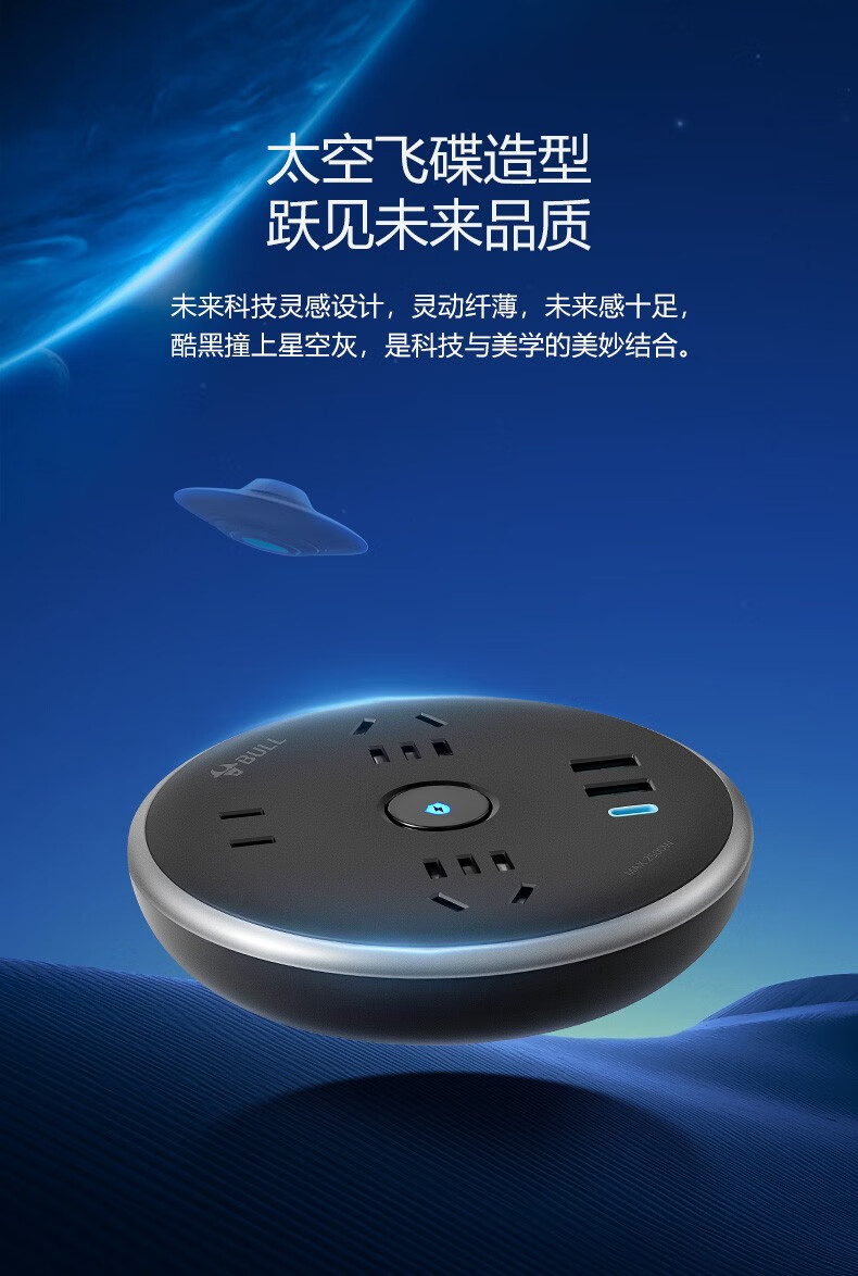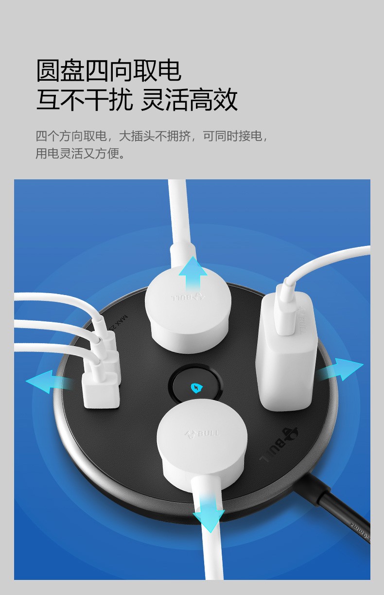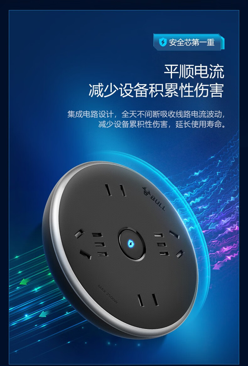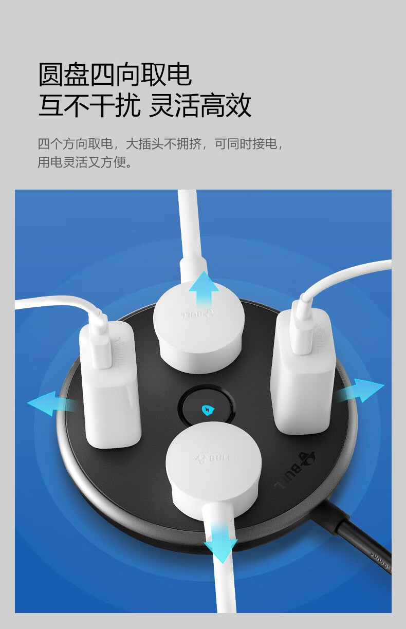 公牛(BULL) 飞碟造型抗电涌防浪涌插座/插排/排插/接线板 R6220 四位总控+全长1.5米 无USB款 自营