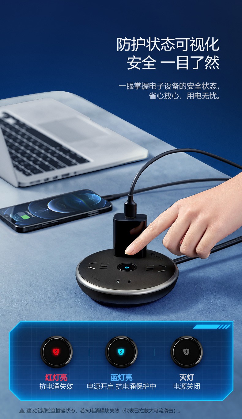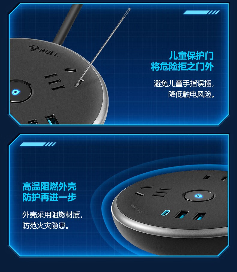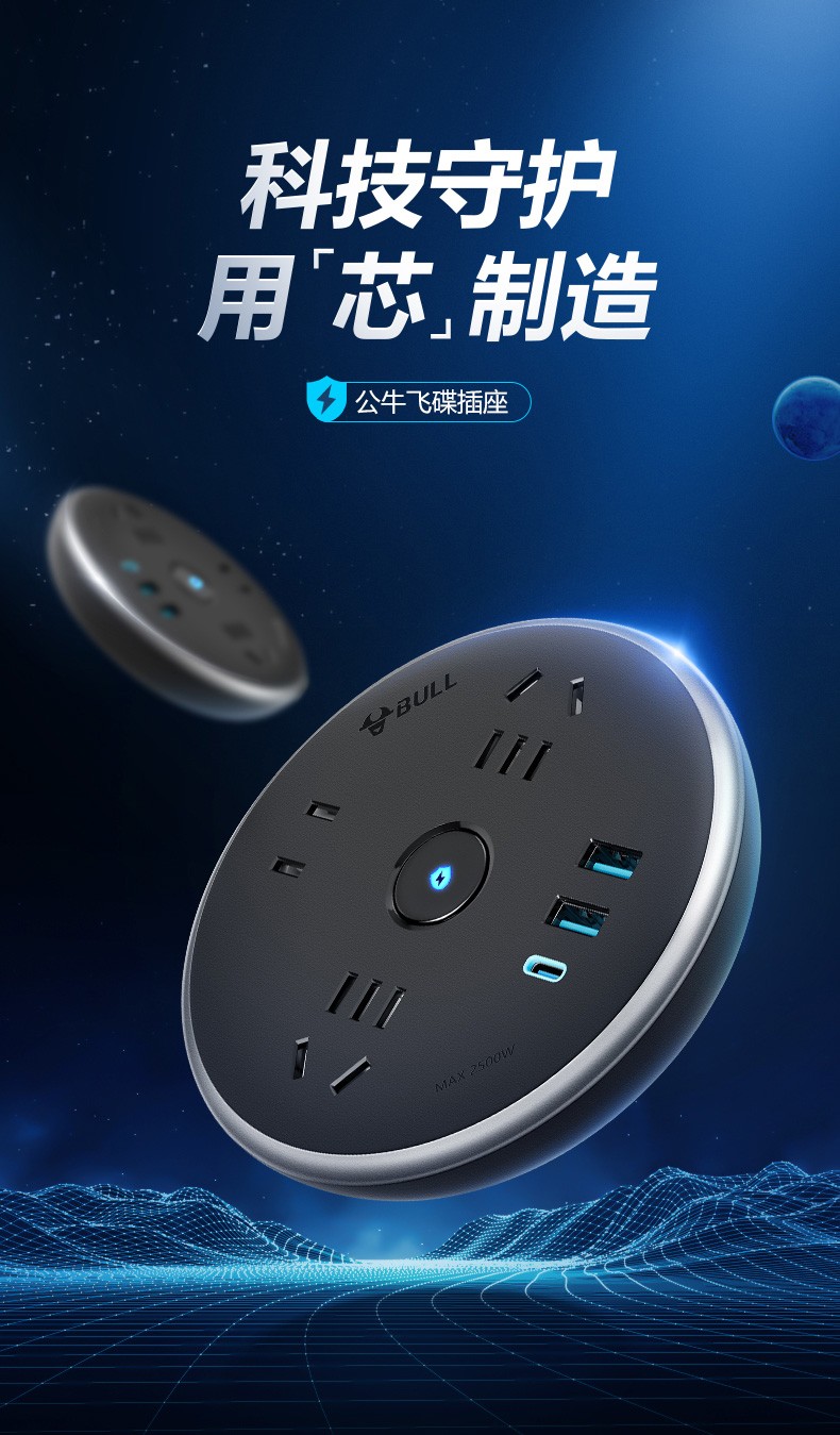 公牛(BULL) 飞碟造型抗电涌防浪涌插座/插排/排插/接线板 R6220 四位总控+全长1.5米 无USB款 自营