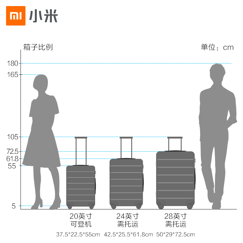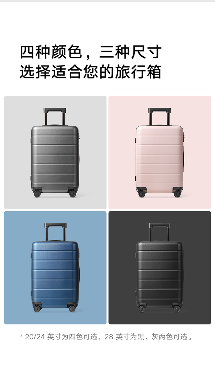 小米行李箱男女万向轮拉杆箱旅行箱学生密码箱28英寸灰色 自营
