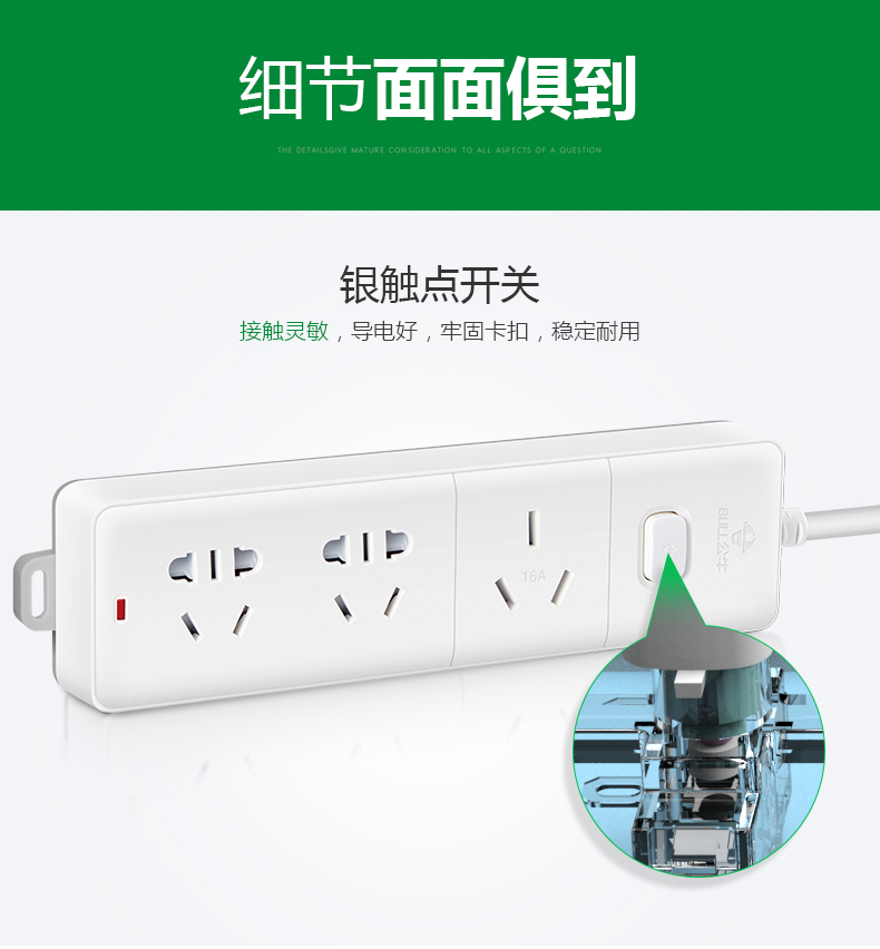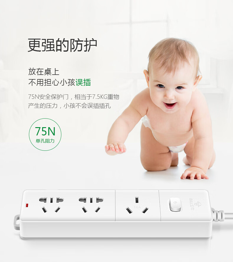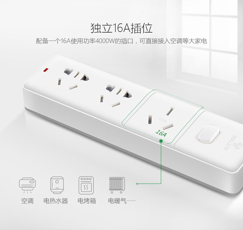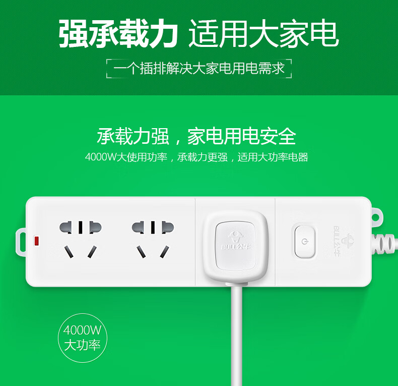 公牛 GN-606D 三位总控开关排插1.8米 自营