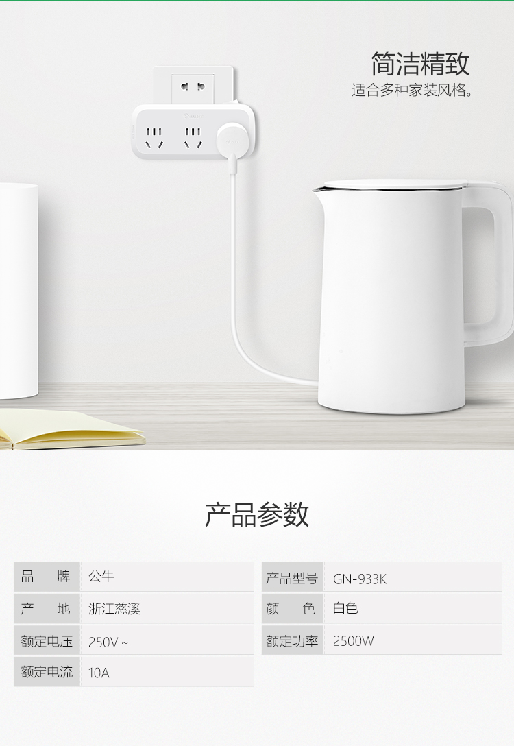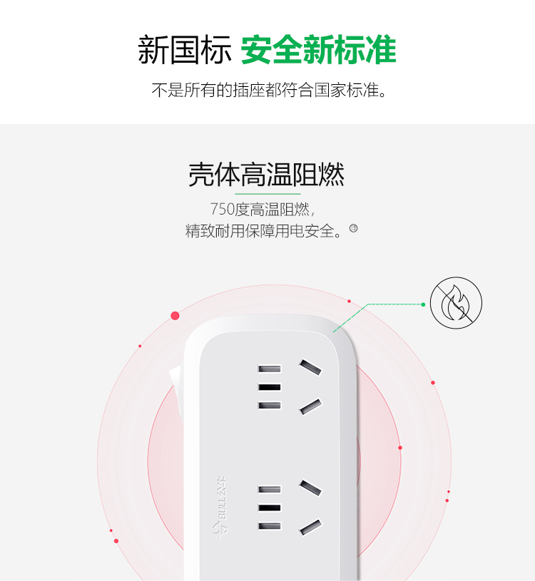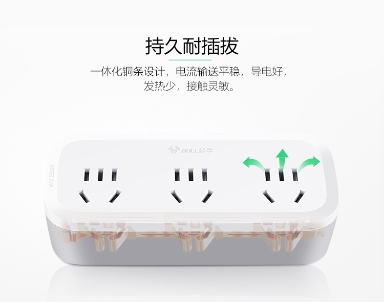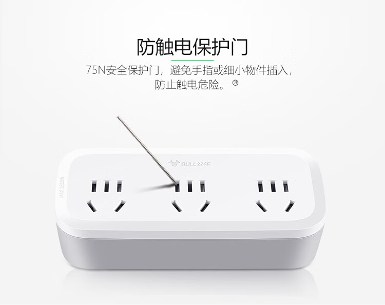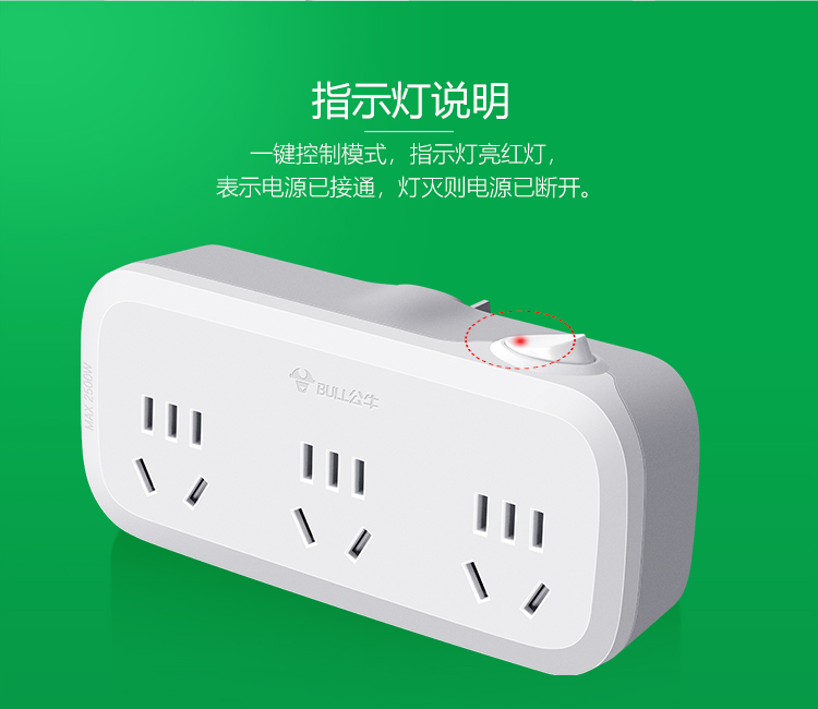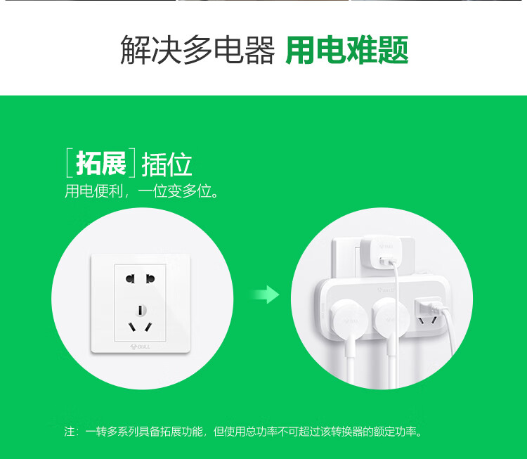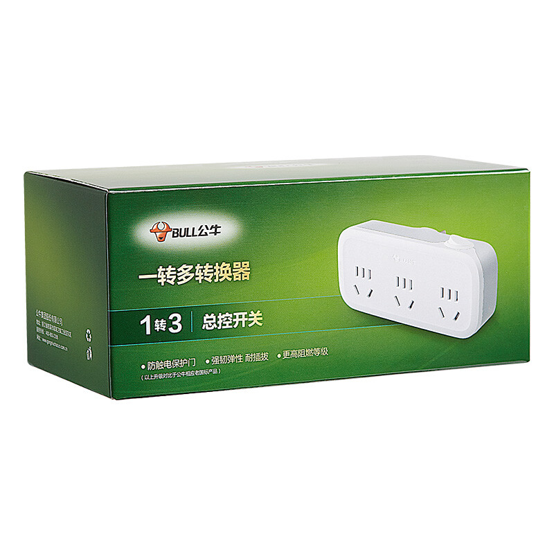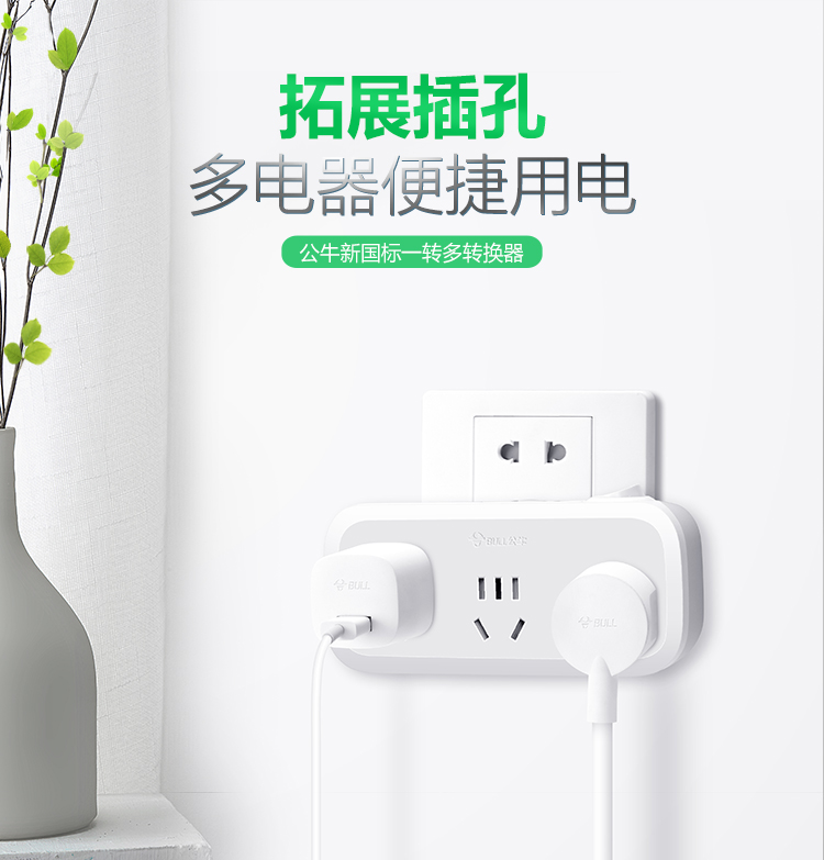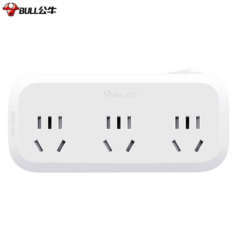 公牛(BULL)转换插头/一转三插座/转换插座/转换器/国标电源转换器 适用于卧室、厨房 3位总控 GN-933K 自营