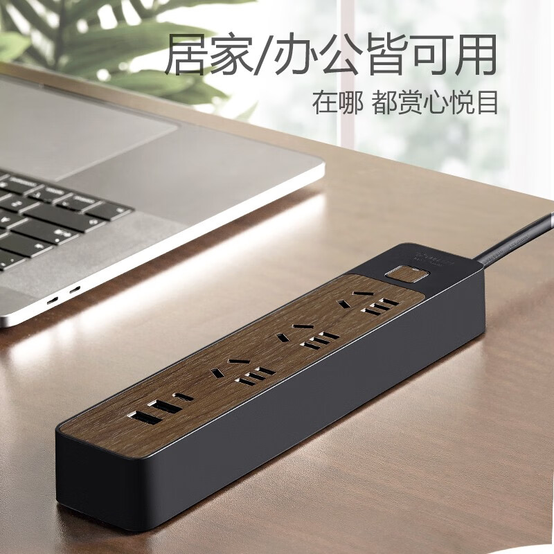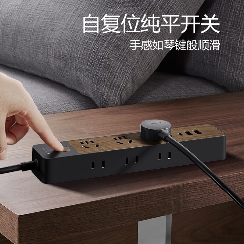 公牛(BULL)18W苹果快充USB插座/插线板/插排/拖线板 Type-C口+2USB口+6插孔 1.8米黑色木纹 GN-R133U 自营