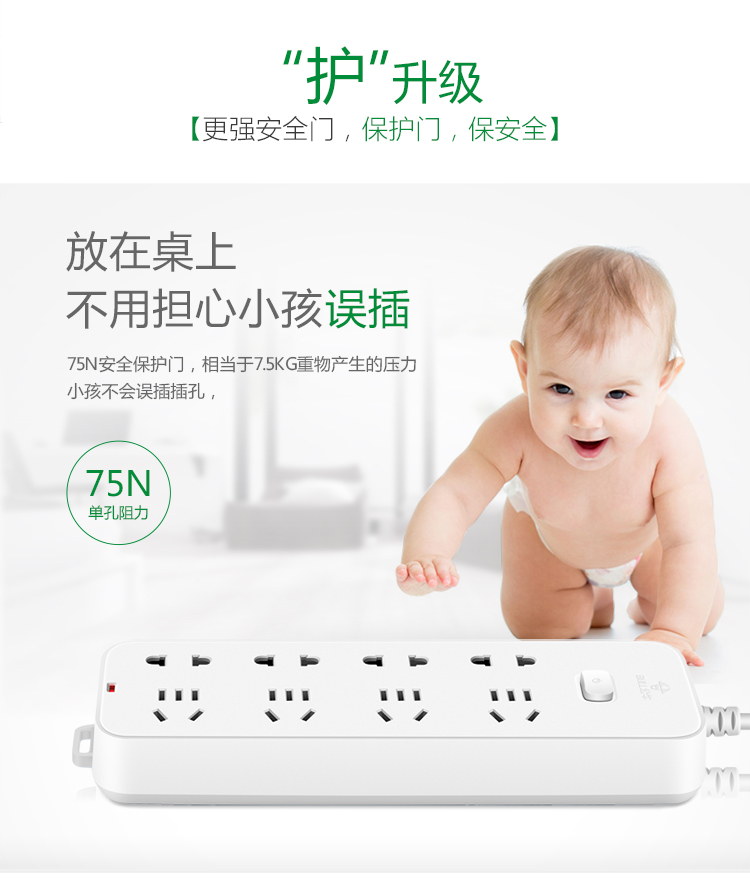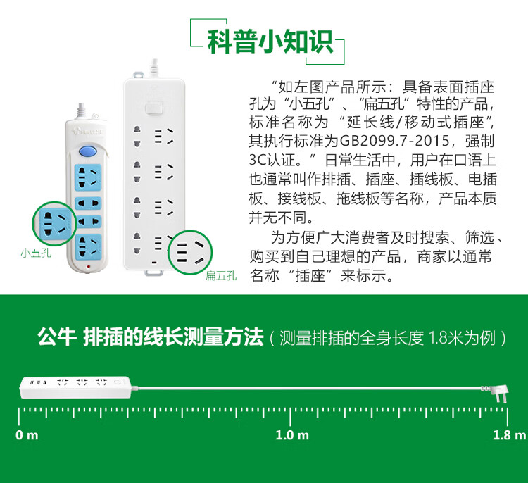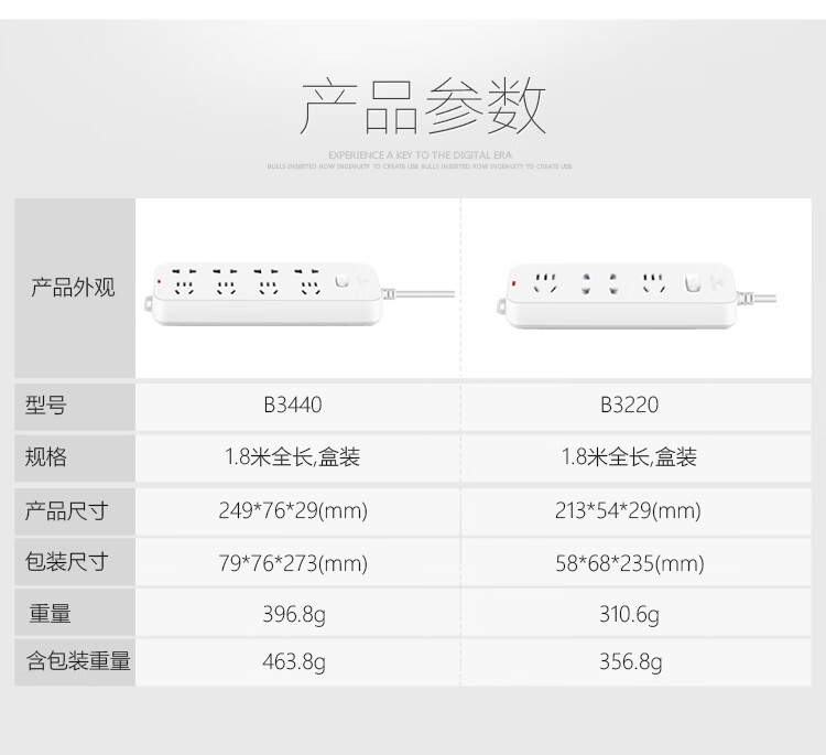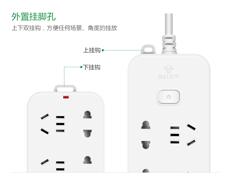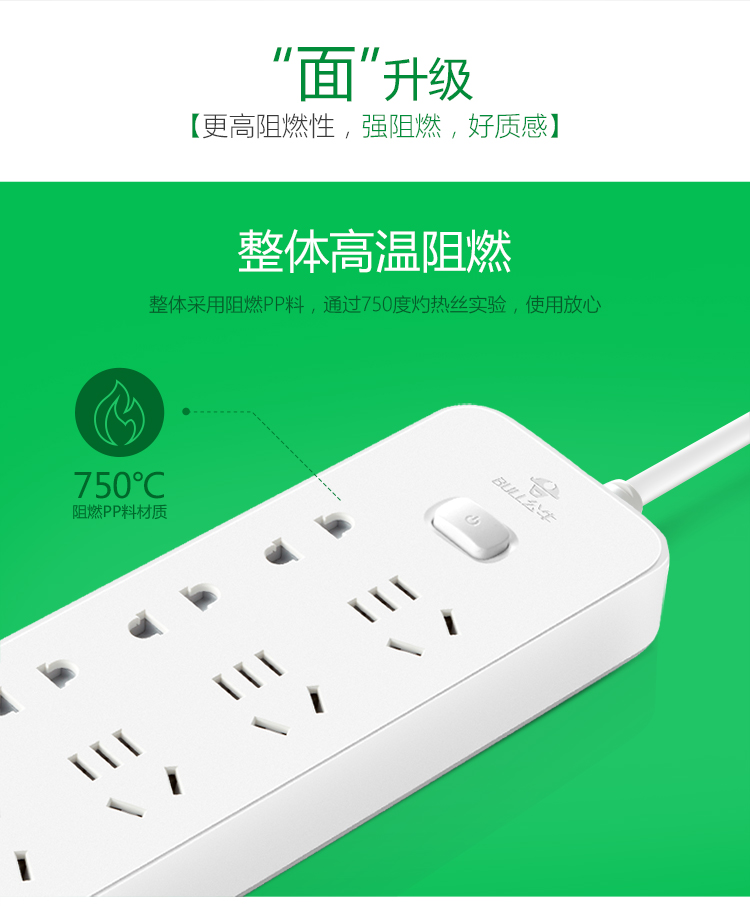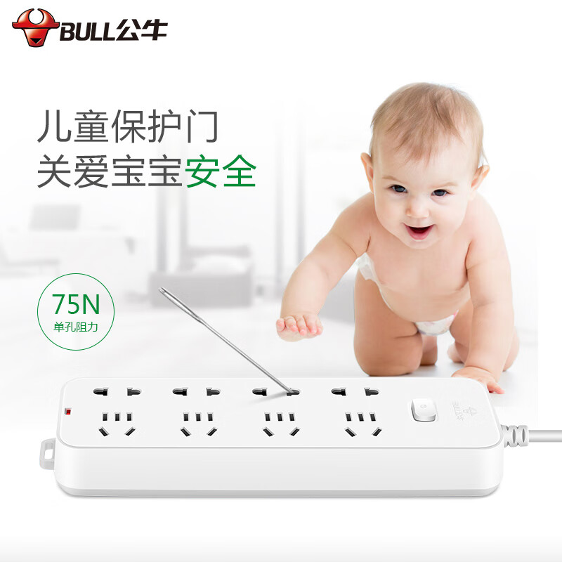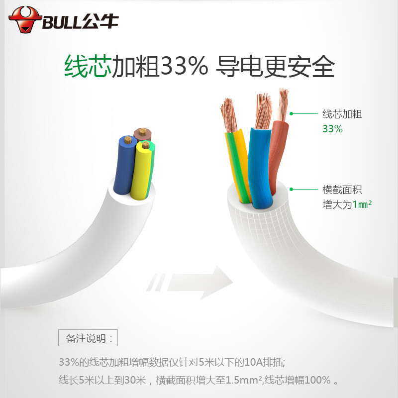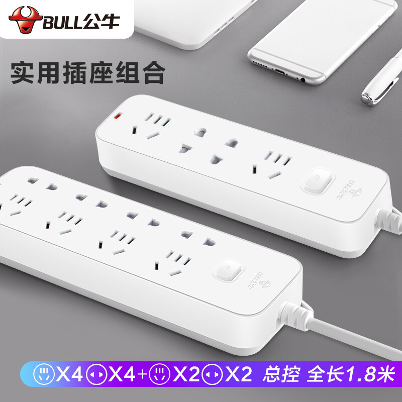 公牛(BULL)新国标插座套装/插线板/插排/排插/接线板/拖线板 GN-B3440+GN-B3220 8位+4位 1.8米组合套装 自营