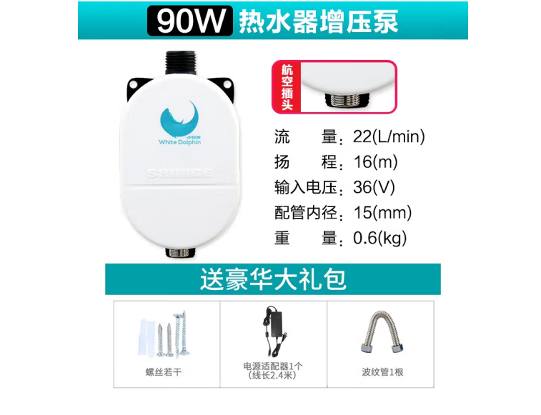 新界增压泵家用全自动加压泵热水器自来水花洒直流增压水泵小型压力泵 小白豚90W热水器增压泵 自营