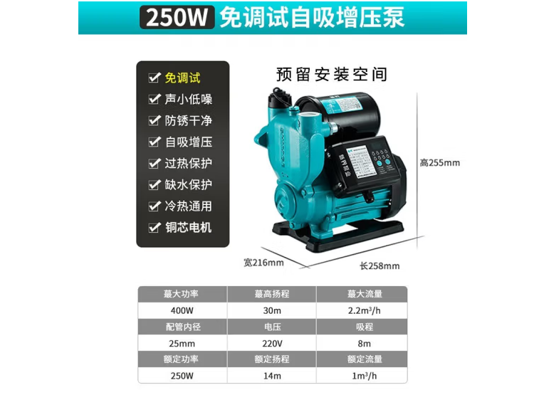 新界增压泵家用智能全自动自来水加压自吸泵全屋增压水泵太阳能增压泵 250W免调试增压泵 自营