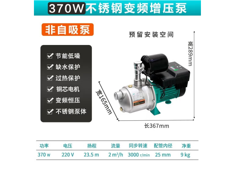 新界不锈钢变频增压泵恒压水泵全自动智能家用自来水加压不锈钢加压水泵 370W变频增压泵 自营