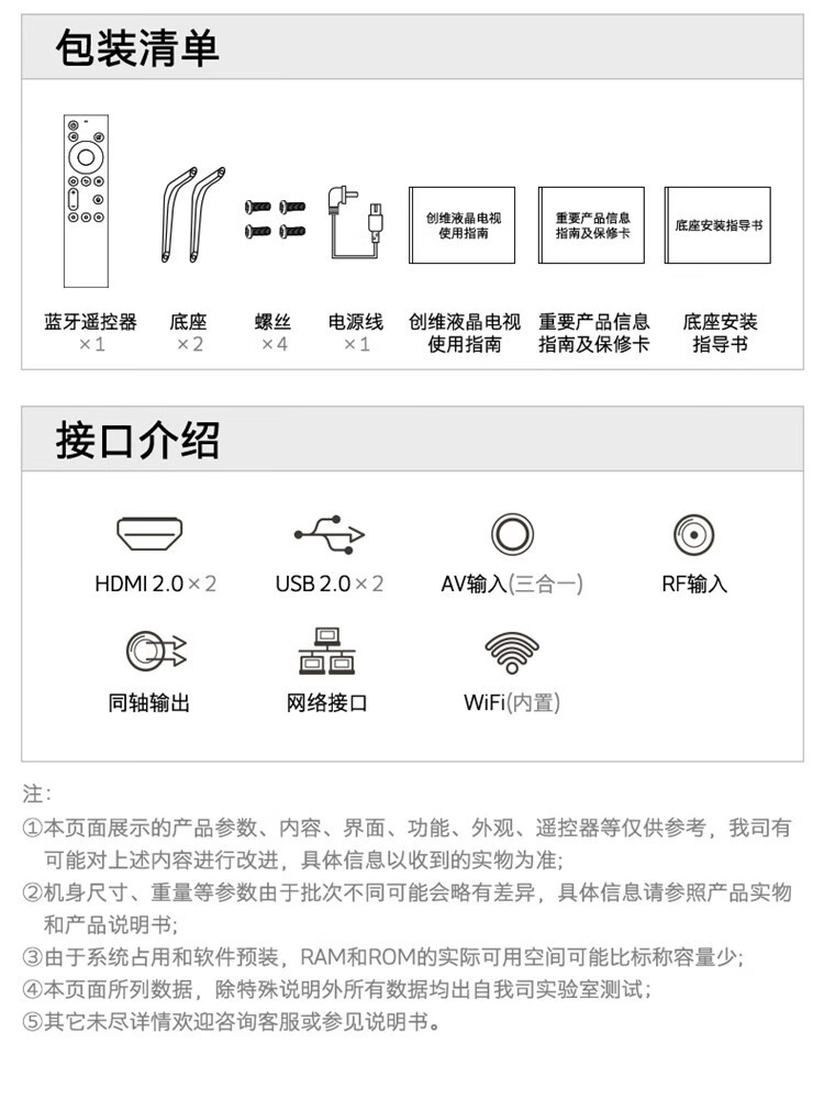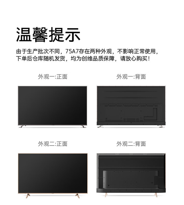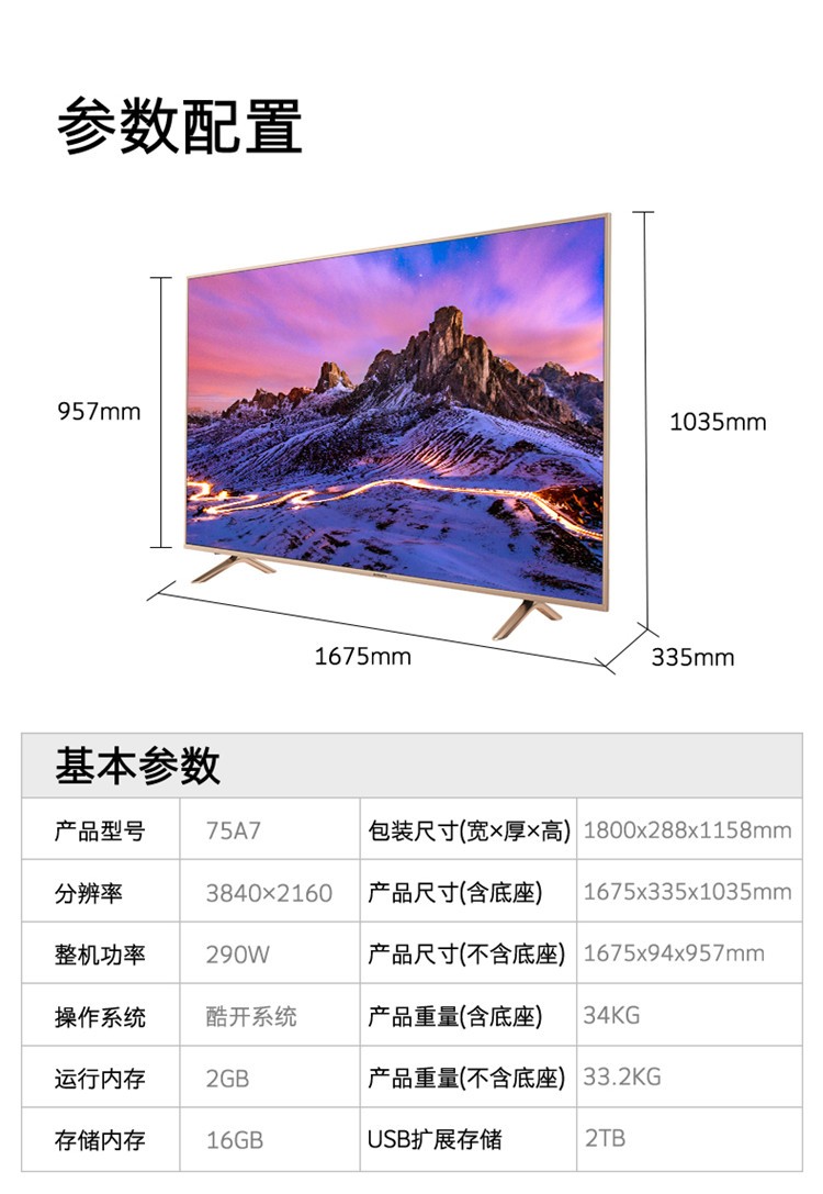 创维(Skyworth)75A7 75英寸4K超清HDR智能投屏语音操控网络WIF超薄平板液晶电视机 75英寸 自营