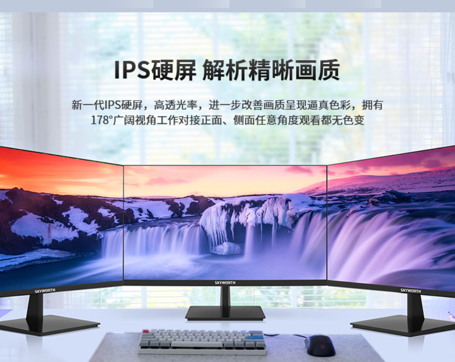 创维 27英寸电脑显示器 三边微边框ips技术屏 低蓝光可壁挂拼接屏 办公液晶显示屏幕M271Fj 黑色 自营