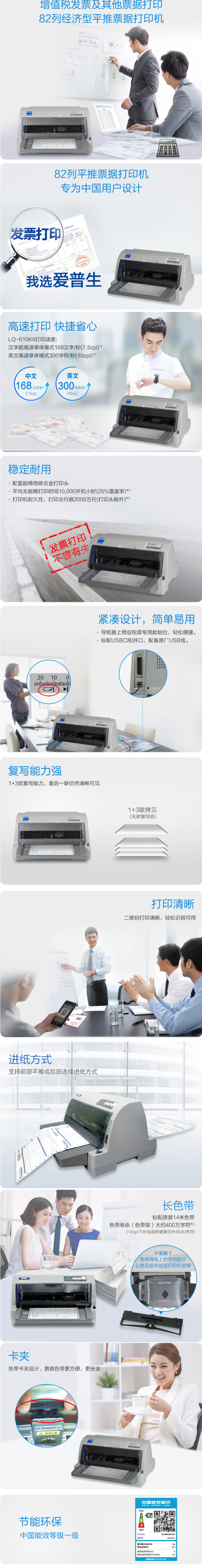 爱普生(EPSON)LQ-610KII 针式打印机 LQ-610K升级版 针式打印机(82列) 自营