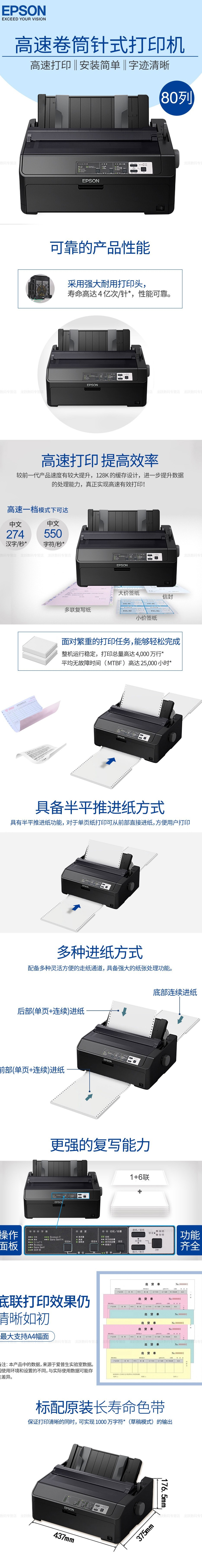 爱普生(EPSON) LQ-595KII 针式打印机(80列卷筒式)590KII同款 爱普生595K打印机升级黑色【LQ-595KII】 自营
