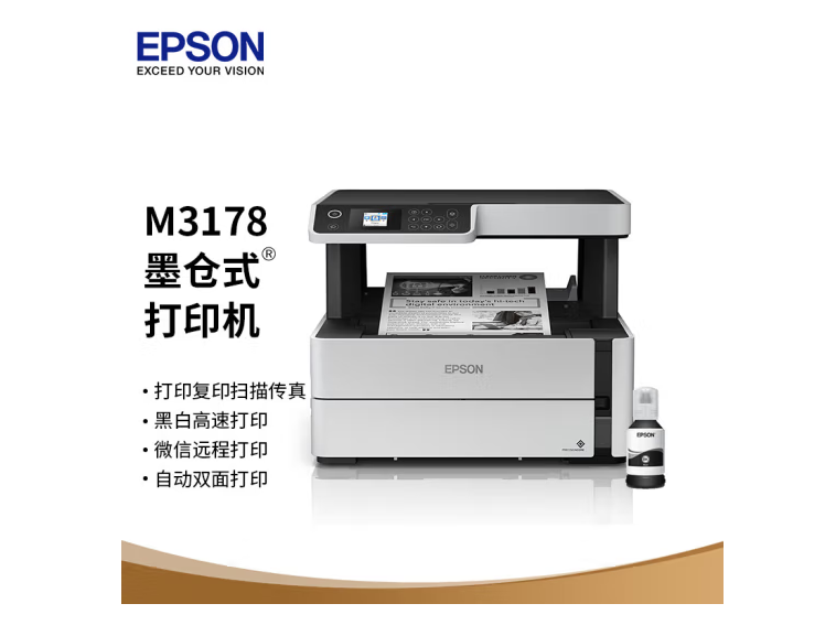 爱普生(EPSON)墨仓式M3178黑白多功能传真一体机 全新设计内置墨仓家用商用打印无忧 自营