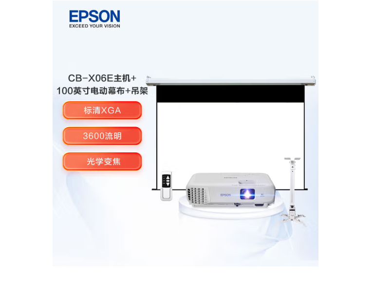 爱普生(EPSON) CB-X06E 投影仪 办公投影机套装 投影机标配+100英寸电动幕布+吊架 自营