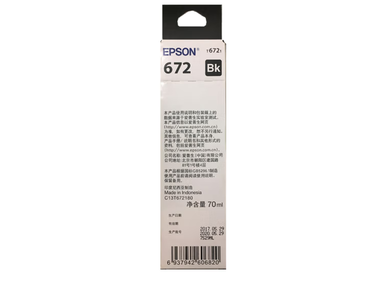 爱普生T6721黑色墨水瓶(适用L220/L310/L313/L211/L360/L380/L455/L385/L485/L565) 自营