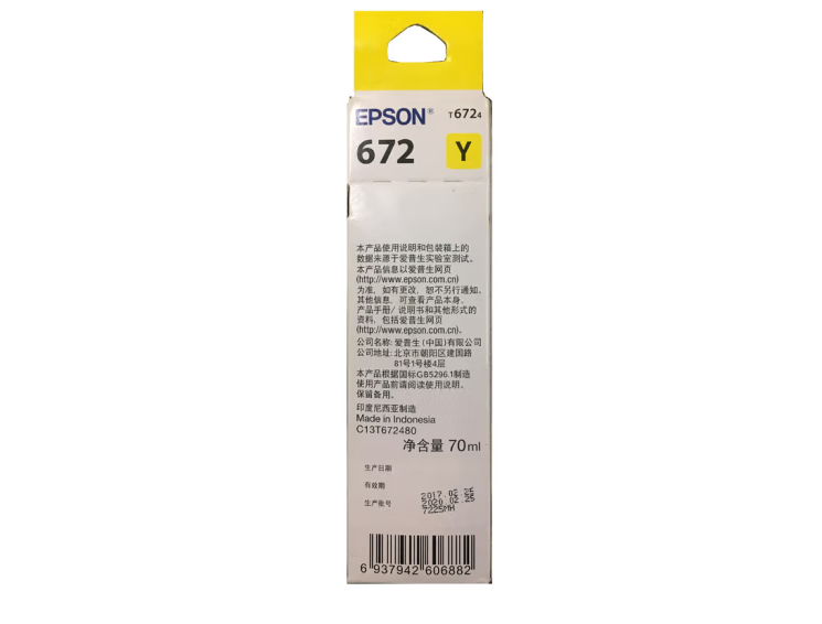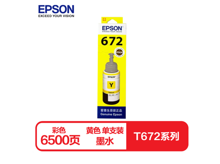 爱普生T6724黄色墨水补充装(适用L220/L310/L313/L211/L360/L380/L455L485/L565/L605/L655) 自营