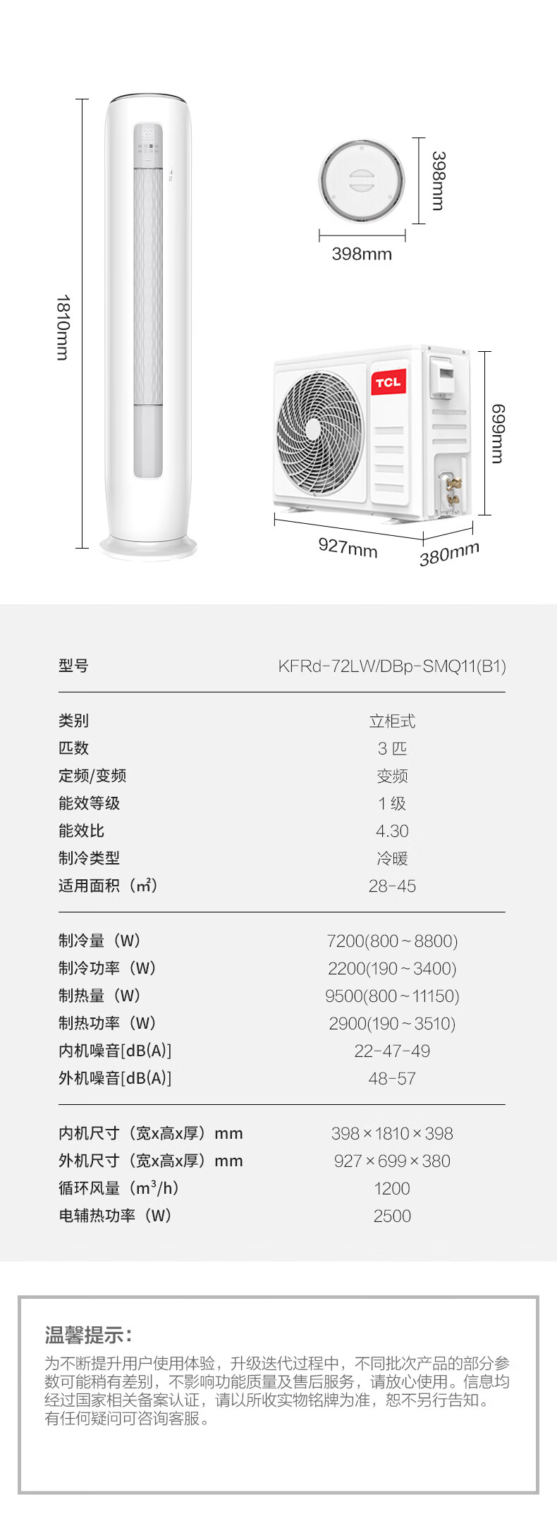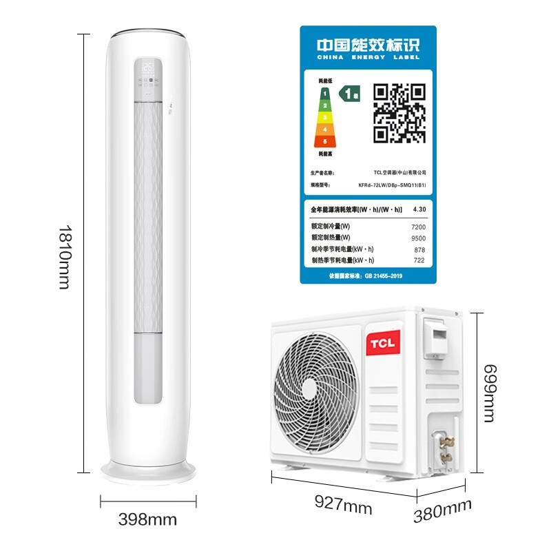 TCL 大3匹 新一级能效 变频冷暖 柔风智能自清洁 立柜式空调KFRd-72LW/DBp-SMQ11(B1) 自营
