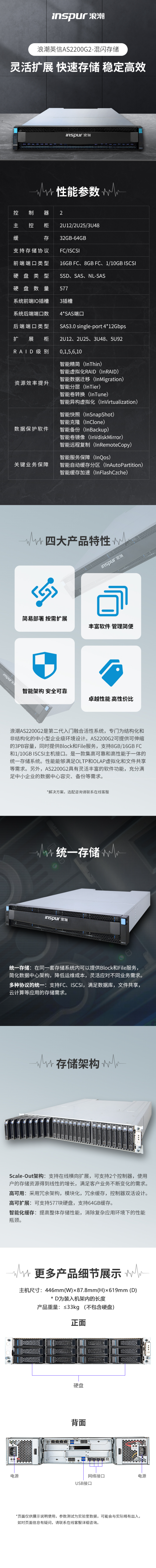 浪潮(INSPUR) AS2200G2磁盘阵列(双控/32G缓存/8个千兆接口/4T*4/双电/三年服务) 自营