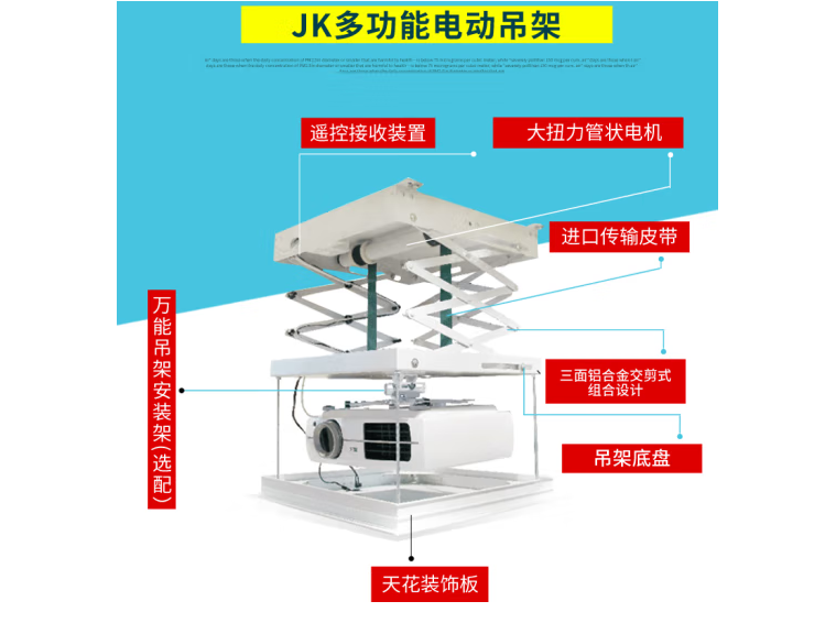 JK经科投影仪电动吊架 投影机吊架 电动升降架 电动遥控投影支架 T80A (行程655MM) 自营