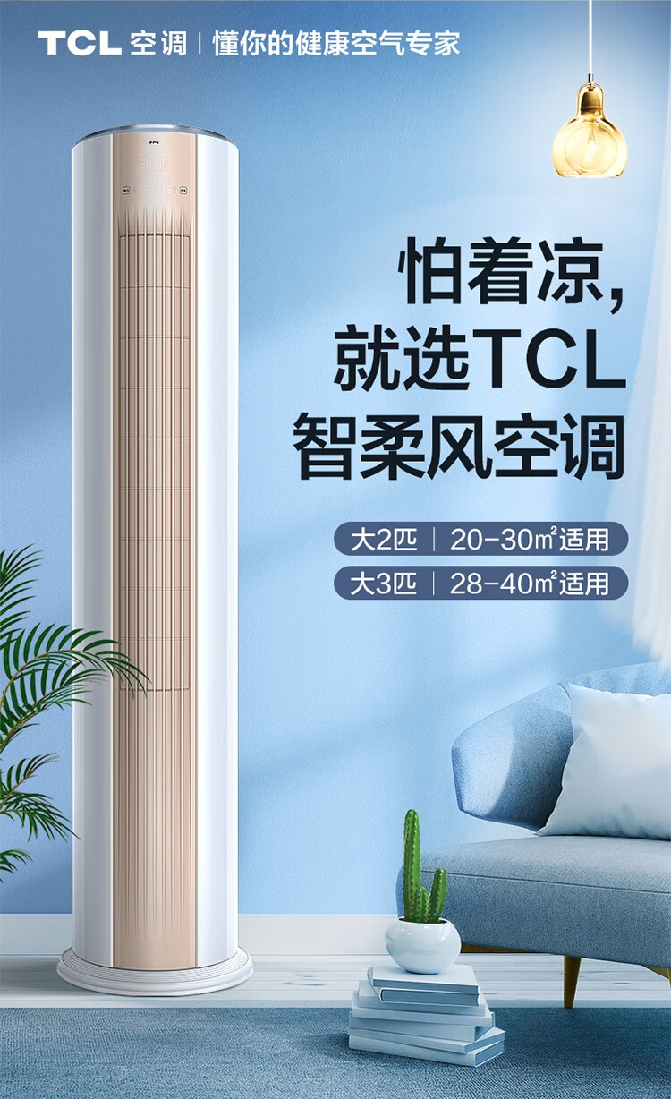 TCL大3匹空调冷暖柜机家用三级新能效变频大2p匹柜机三级能效大两匹三匹立式圆柱空调柜机 大两匹冷暖变频柜机三级能效 自营