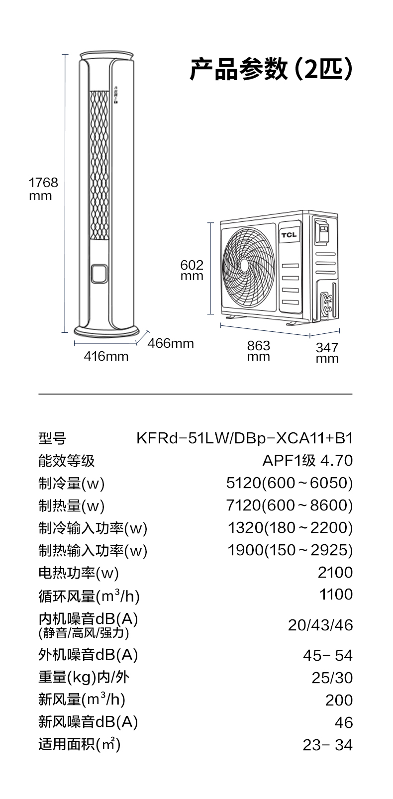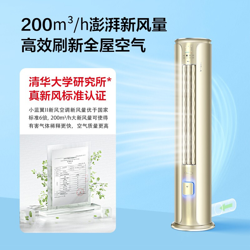 TCL新风空调大2匹新一级变频冷暖新风量200m³/h小蓝翼Ⅱ立柜式空调KFRd-51LW/DBp-XCA11+B1 自营