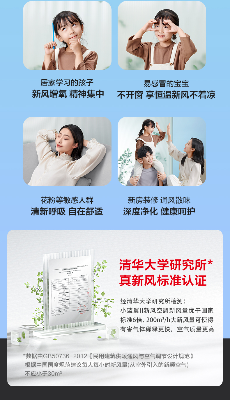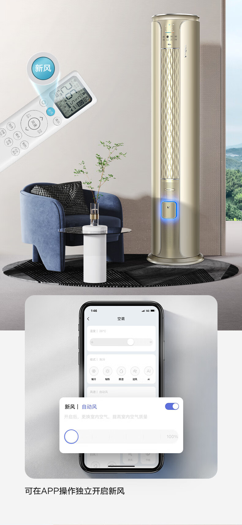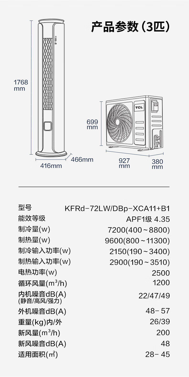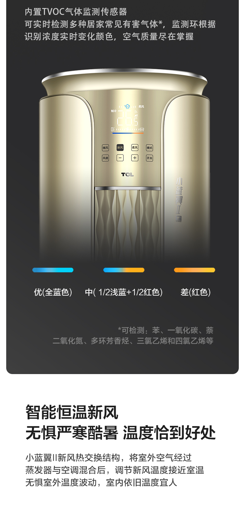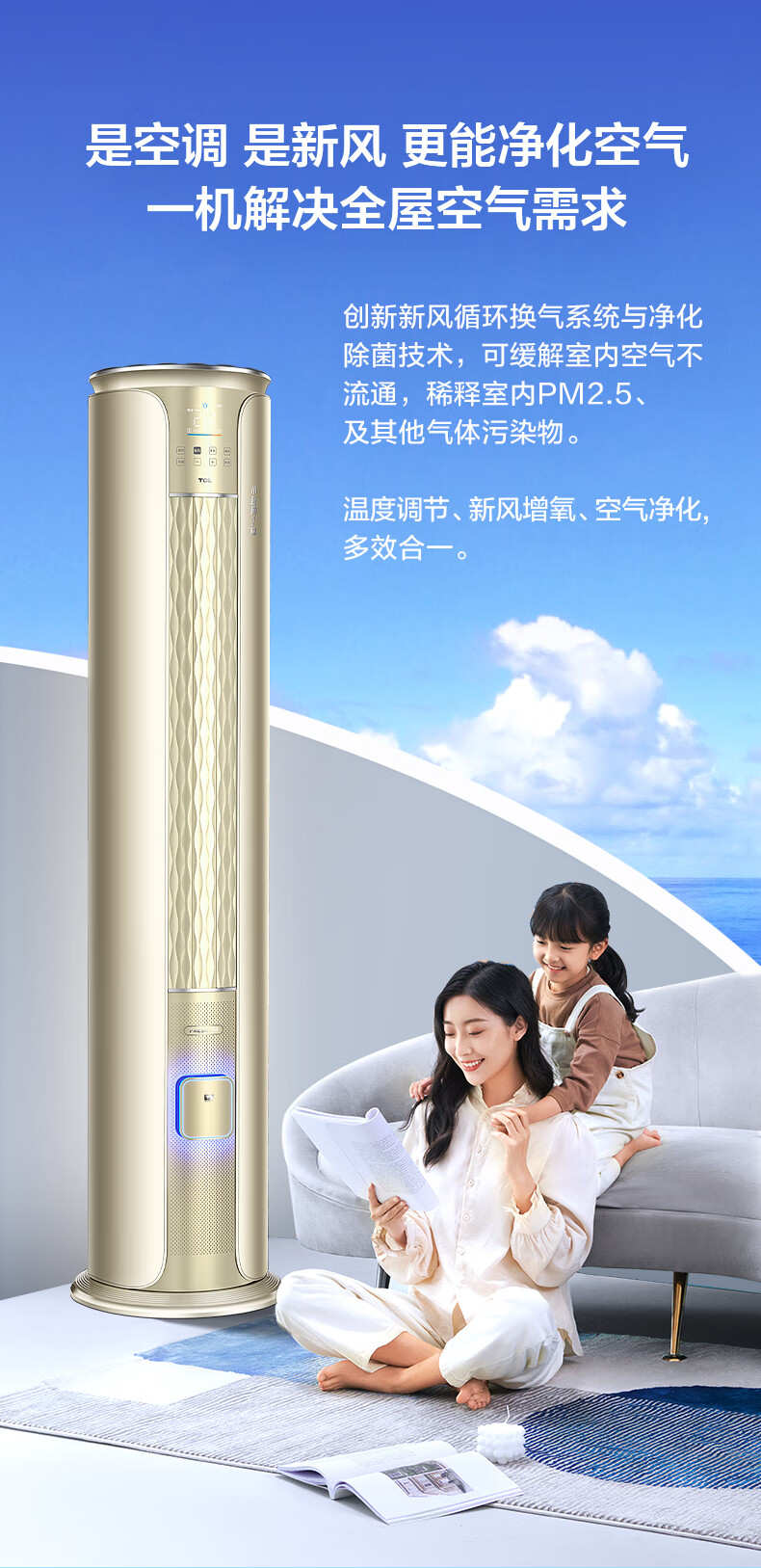 TCL新风空调大3匹新一级变频冷暖新风量200m³/h小蓝翼Ⅱ立柜式空调KFRd-72LW/DBp-XCA11+B1 自营