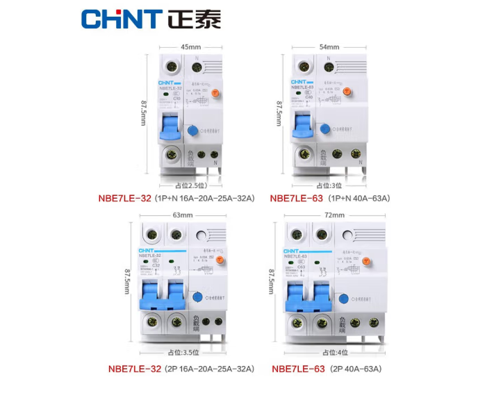 正泰(CHNT) 漏电保护器 空气开关 家用小型空开总闸断路器 漏保NBE7LE 2P 63A 自营