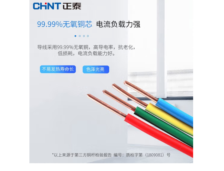 正泰(CHNT) 电线电缆 BV4平方 黄色单芯单股零线 国标铜芯硬线 家装空调热水器用线50米 自营