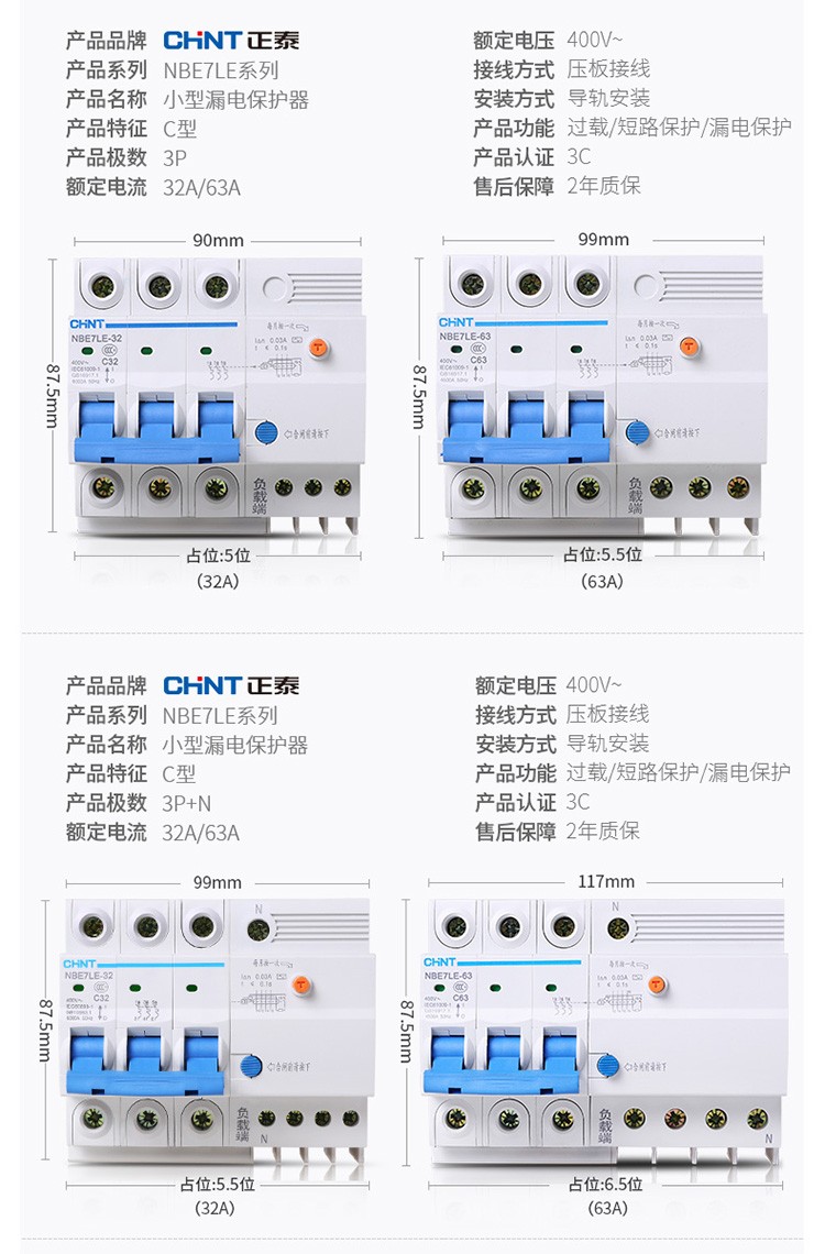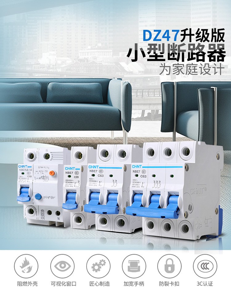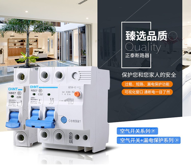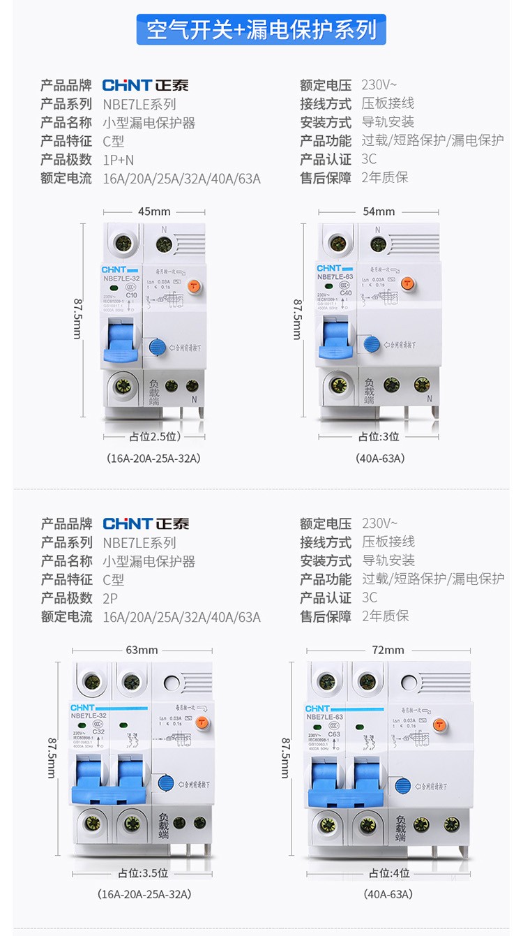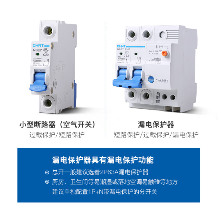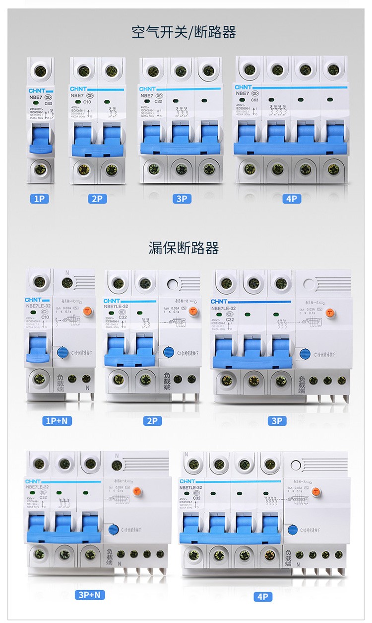 正泰(CHNT)空气开关漏电保护开关断路器空开2P3P4P小型家用NBE7LE2P10A(单位:个) 自营