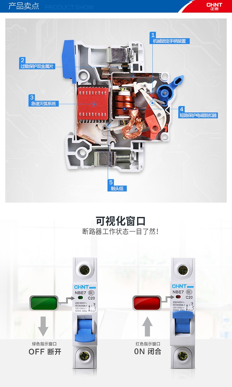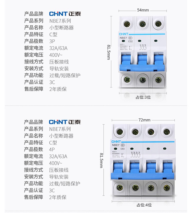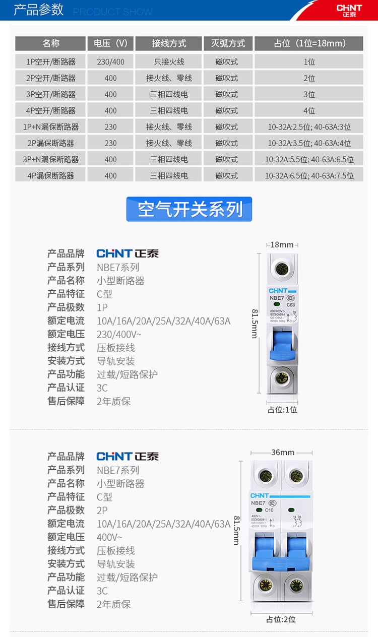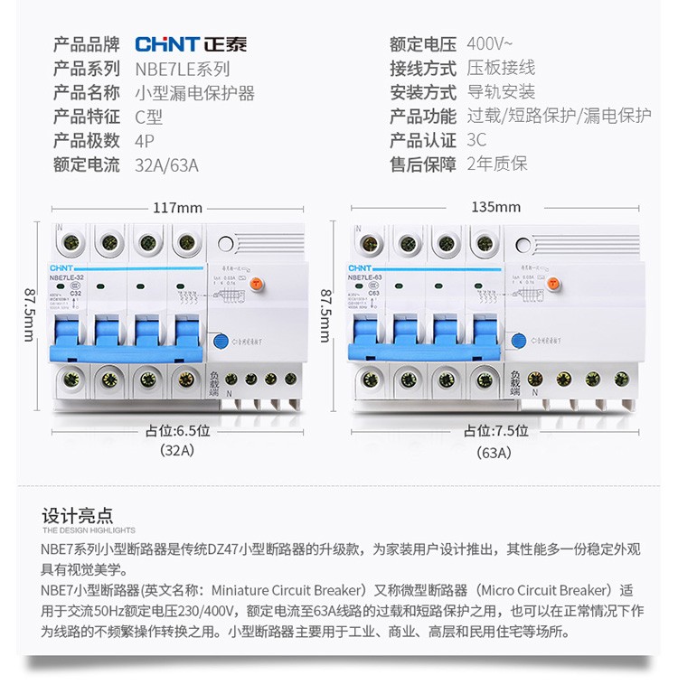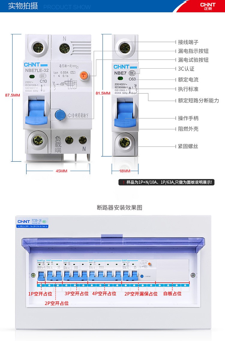 正泰(CHNT)空气开关漏电保护开关断路器空开2P3P4P小型家用NBE7LE2P10A(单位:个) 自营
