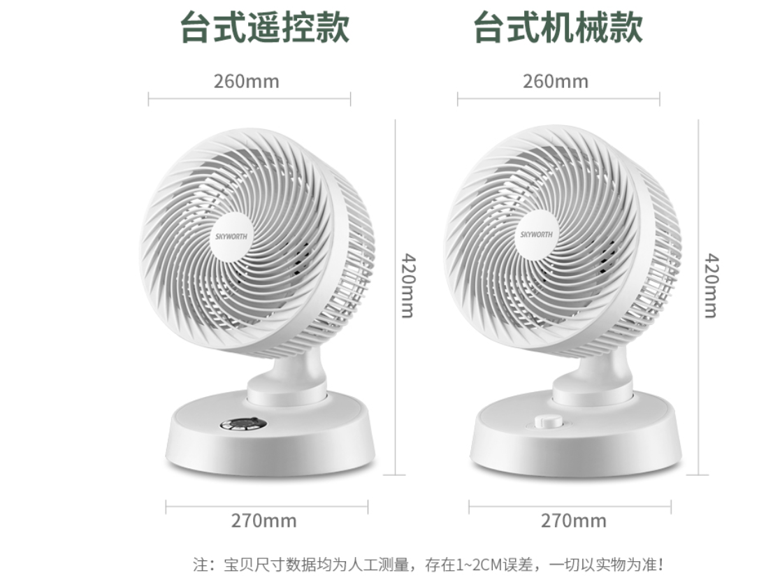 创维(Skyworth)空气循环扇,台式电风扇遥控涡轮对流扇 办公室宿舍迷你桌面小风扇小台扇 小款机械(25W)【不带摇头】 自营