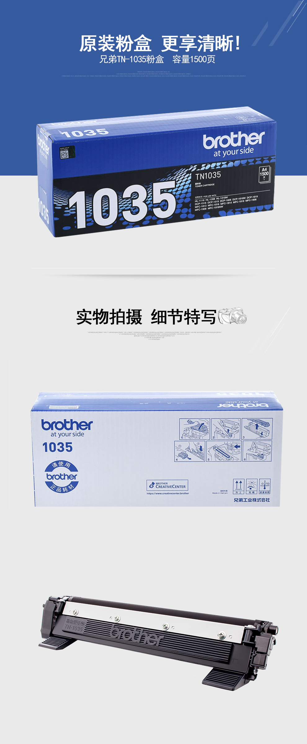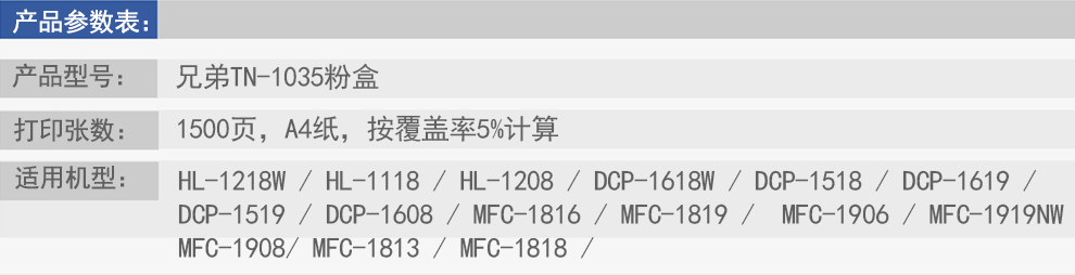 兄弟(brother)TN-1035粉盒DCP-1608 1618W 1919NW 1218W TN-1035(1500页根据a4覆盖率5%计算) 自营
