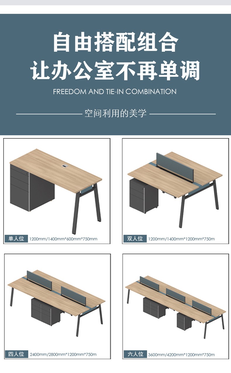 伟豪家具 办公桌椅组合职员简约现代办公家具 员工屏风办公桌 4.2米六人位(含柜) 自营