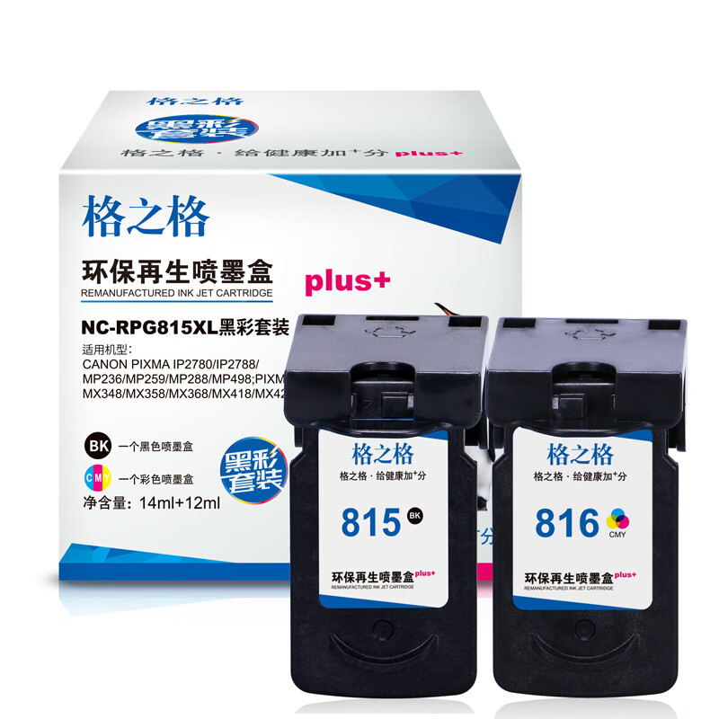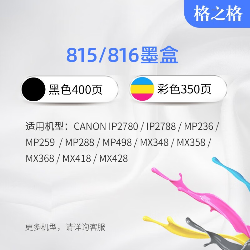 格之格815墨盒套装适用佳能MP288 MP236 IP2780 IP2788 MP259 MX368 428 816打印机墨盒 自营