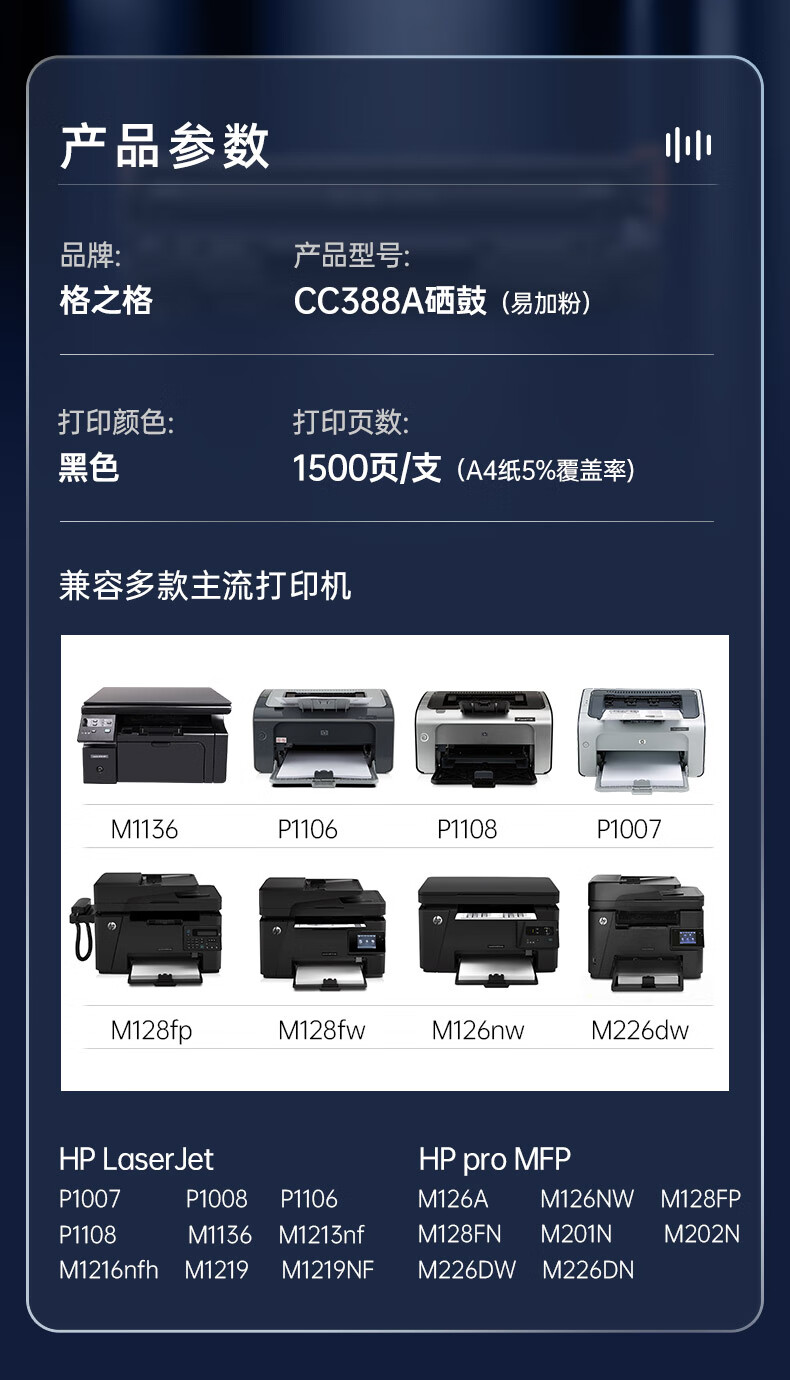 格之格cc388a硒鼓 88a易加粉2支装 cc388a墨盒 适用惠普m126a硒鼓 m1136墨盒 hp p1108 p1106 p1007 m128fn 自营