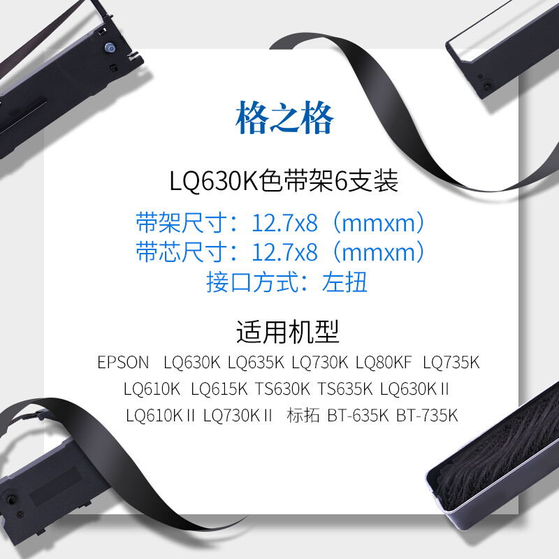 格之格LQ630K/LQ730K色带6支装适用爱普生LQ610K LQ635K LQ730K LQ735K LQ80KF LQ615K针式打印机色带架 自营