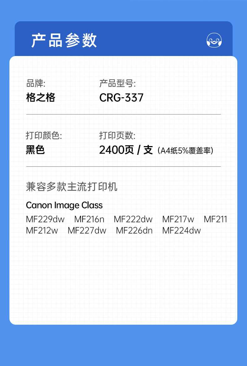 格之格337硒鼓适用佳能mf232w mf226dn mf211 mf229dw mf216n mf217w mf227dw打印机硒鼓双支装粉盒 自营