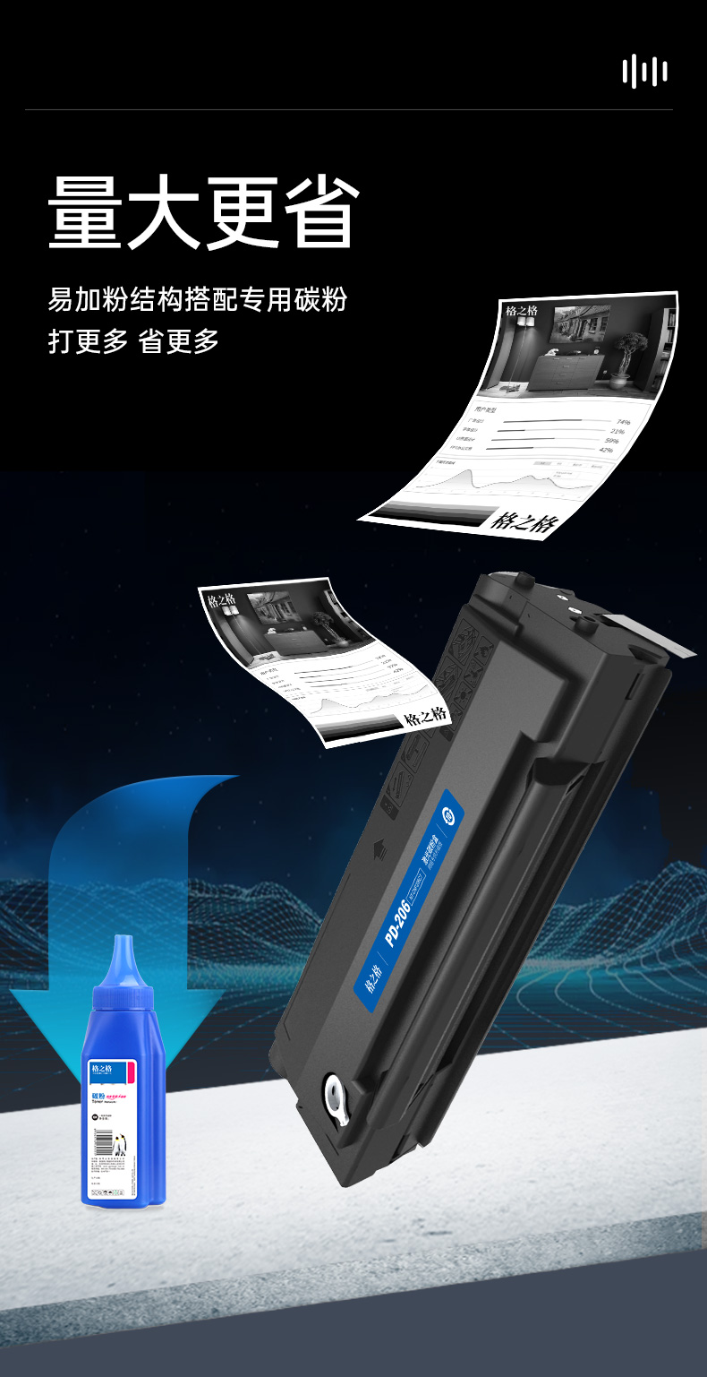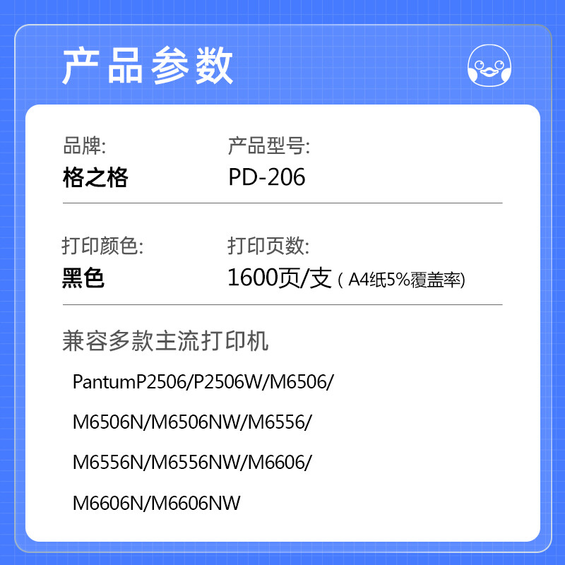 格之格PD-206适用奔图P2506 P2506W M6506 M6506N M6506NW M6556 M6556N M6606 M6606NW打印机易加粉硒鼓 自营