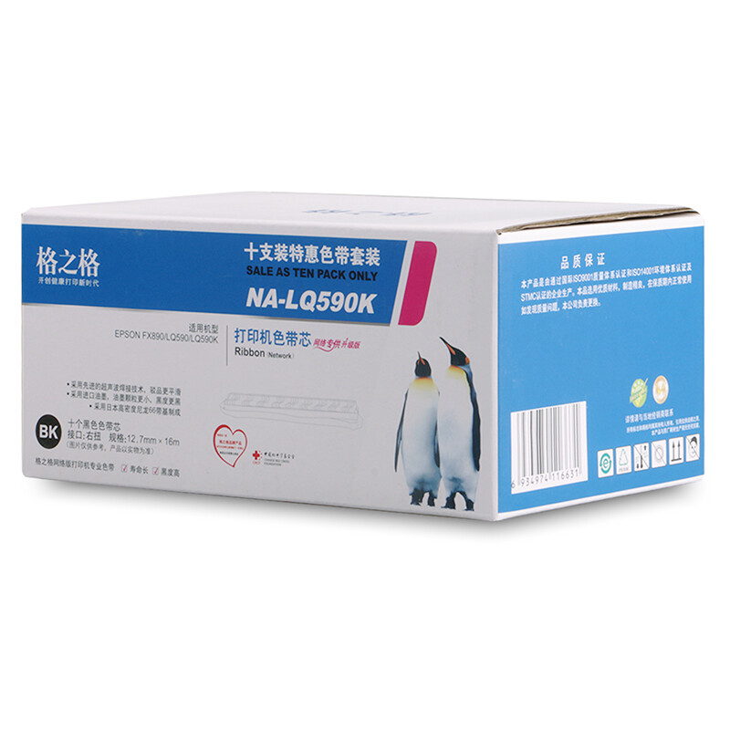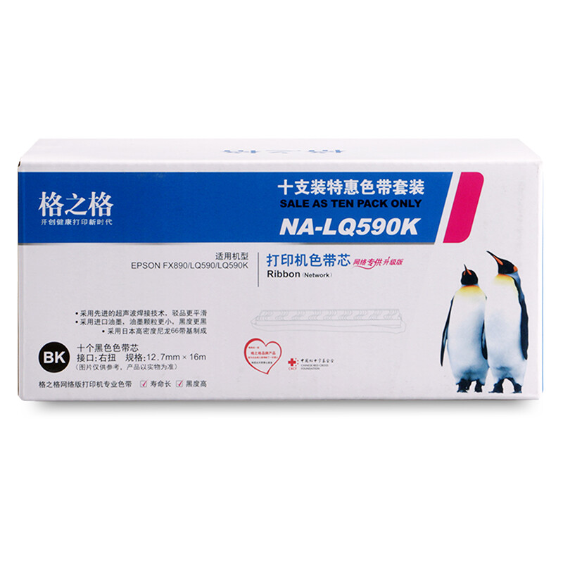 格之格LQ590K色带芯 适用爱普生LQ590 LQ595K LQ591 FX890 LQ689 VP-880打印机色带16米(加长版) 10支装 自营