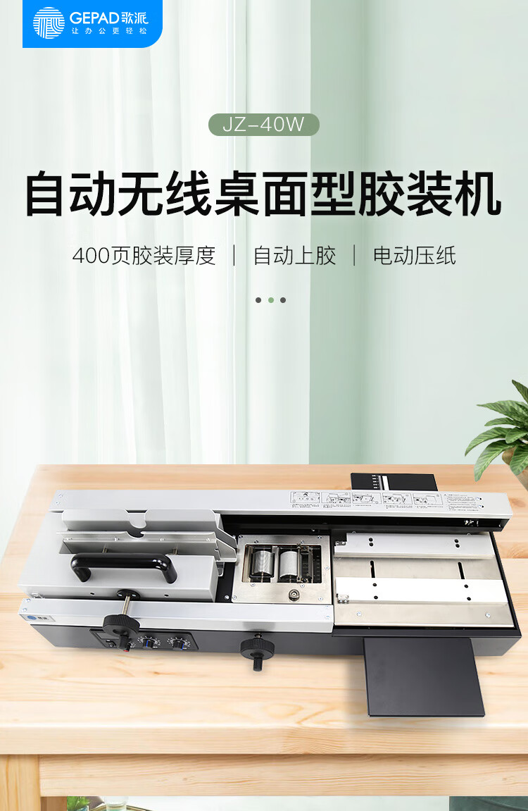 歌派(GEPAD)自动无线胶装机 热熔胶粒电动装订机 合同标书文件档案书籍图文制作过胶机JZ-40W 自营