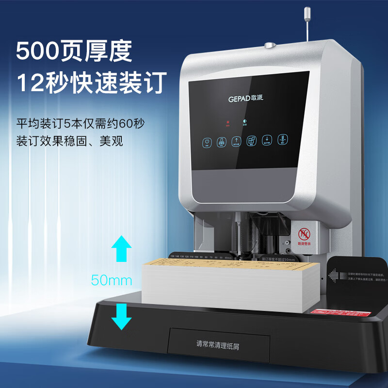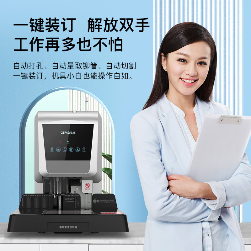 歌派(GEPAD)自动财务凭证装订机 语音提示标书文案卷宗电动档案打孔机 50MM装订厚度 6820 自营