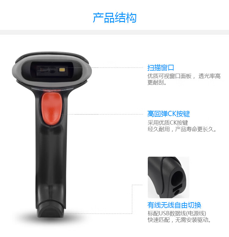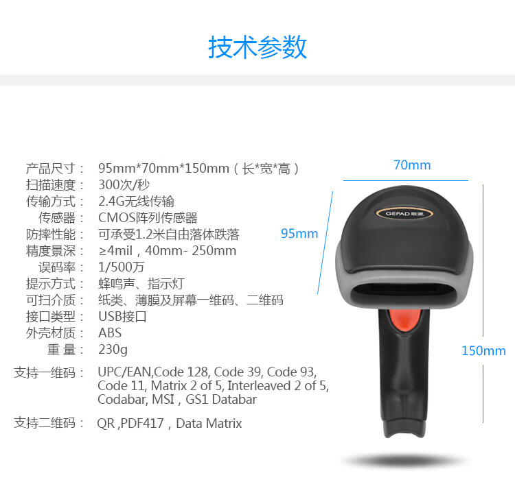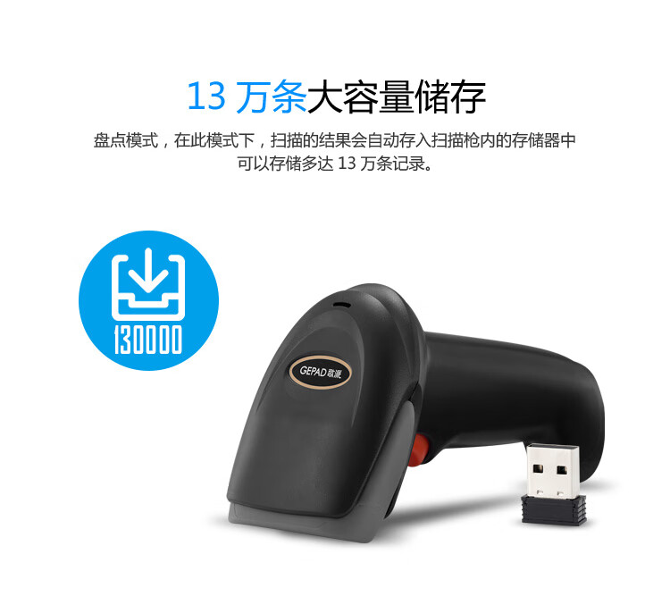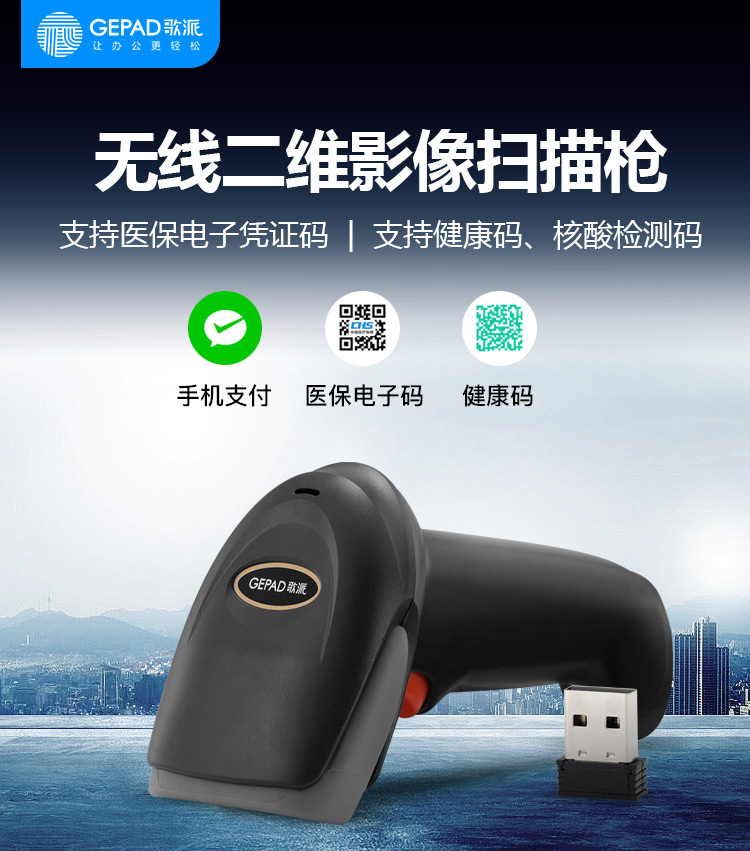 歌派(GEPAD)无线扫描枪 一二维码扫码枪 商超便利店收银开票扫码器 仓储快递条码枪 医保电子凭证码健康码 自营