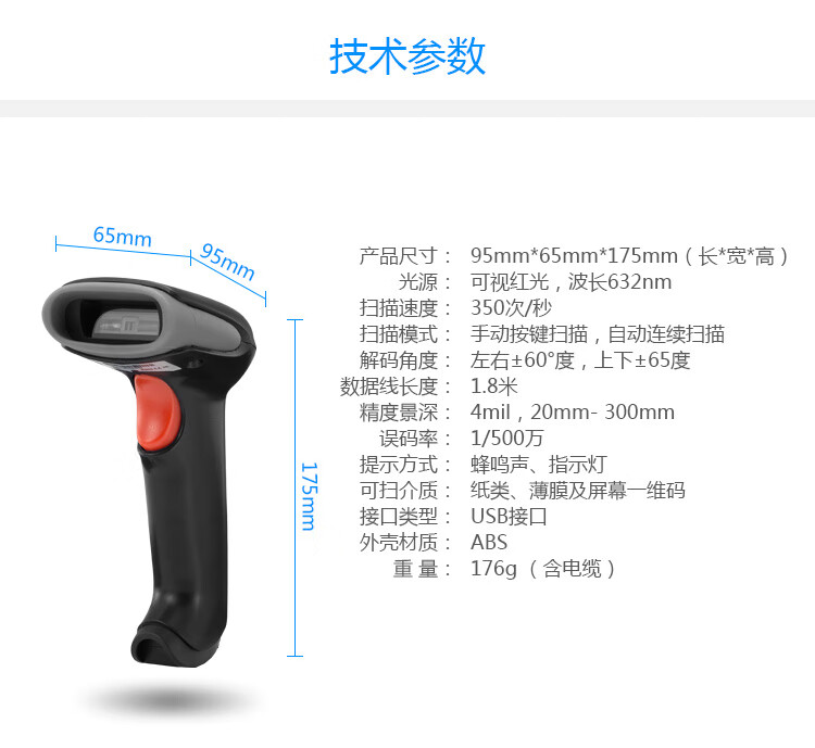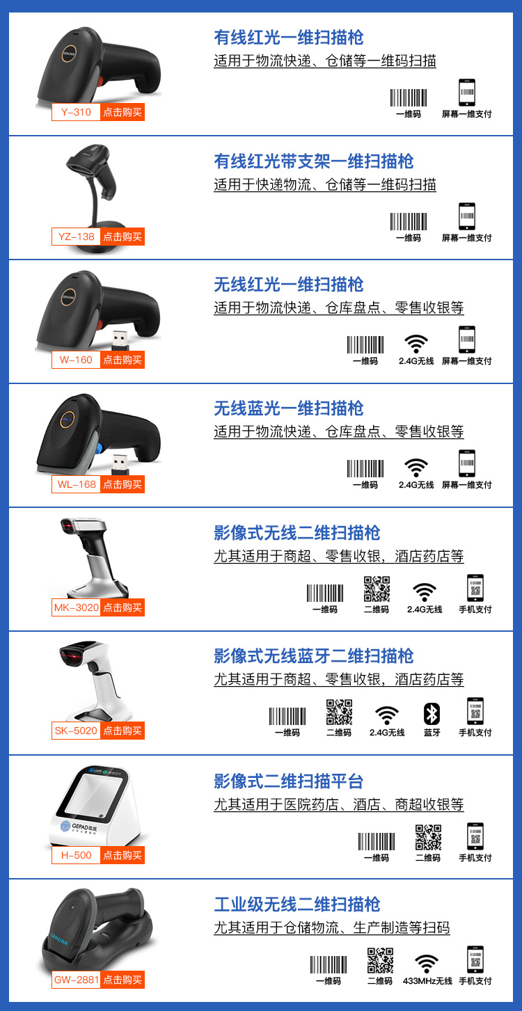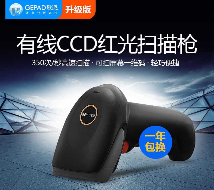 歌派(GEPAD)有线一维高速扫描枪 移动支付微信收款 商超快递扫码枪 自营