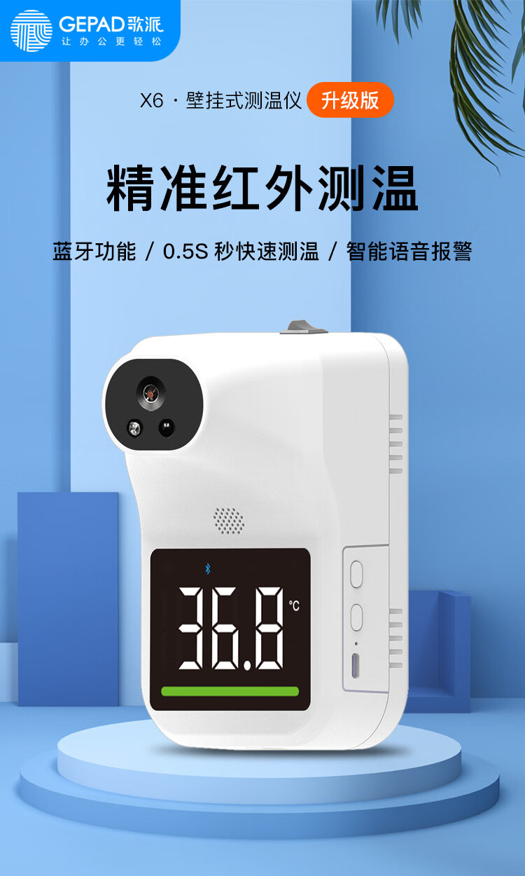 歌派(GEPAD)红外线自动测温仪 额温手温测温枪 高精度体温检测仪 语音报警立式非接触式温度计 X6