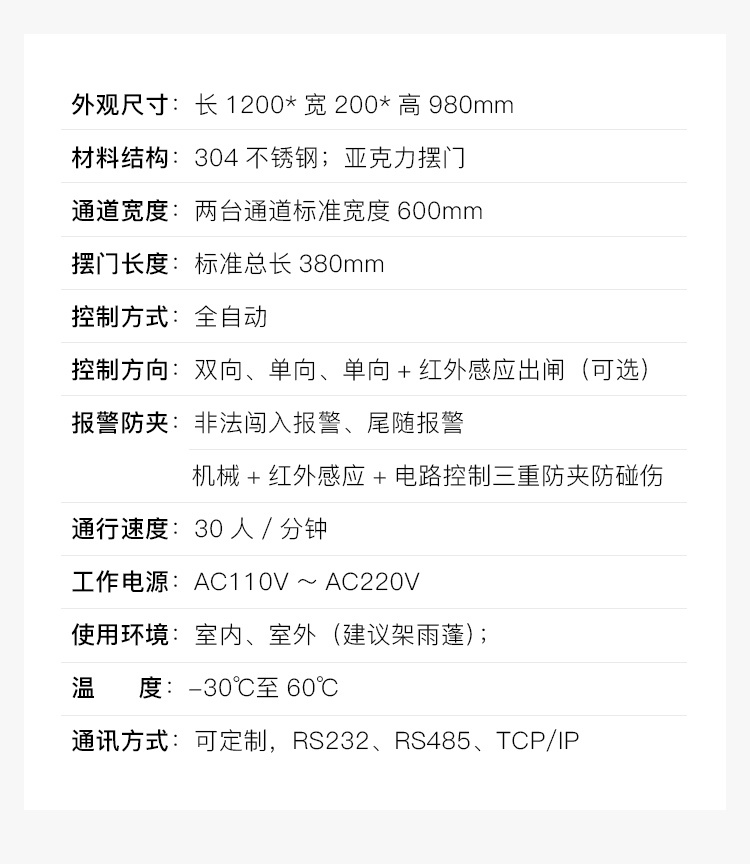 歌派(GEPAD)STPZ-1020 速通门人行通道摆闸 测温人脸识别刷卡门禁系统 小区学校闸机 单机芯 可定制