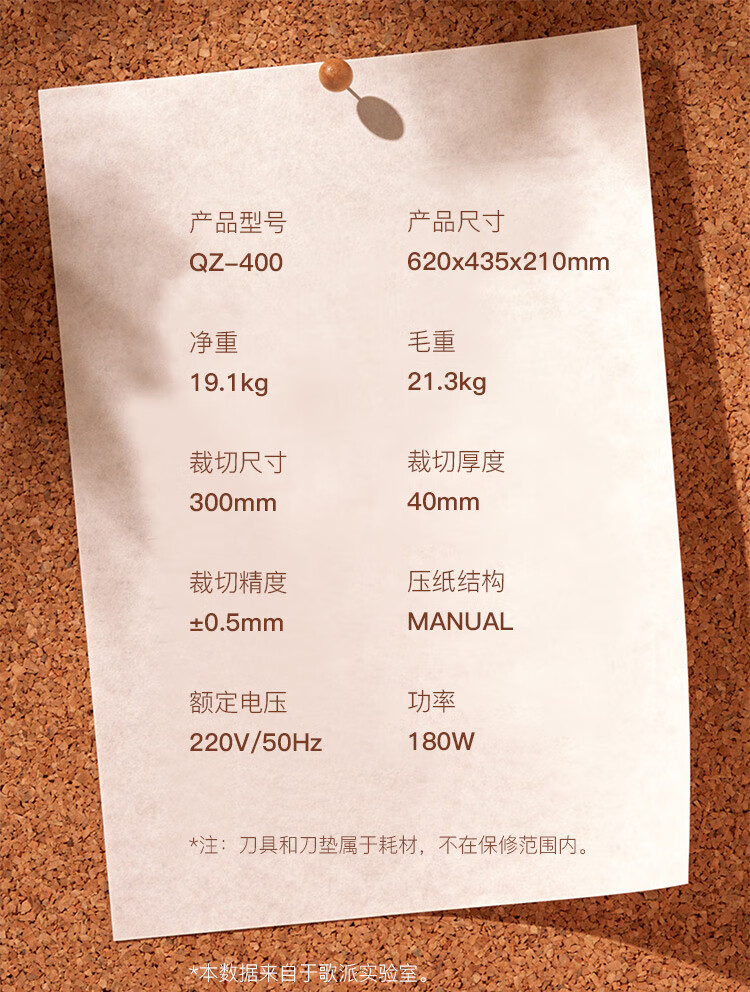 歌派(GEPAD)QZ-400 电动数控切纸机 台式桌面切纸刀 文件书籍裁纸机 裁纸刀 自营