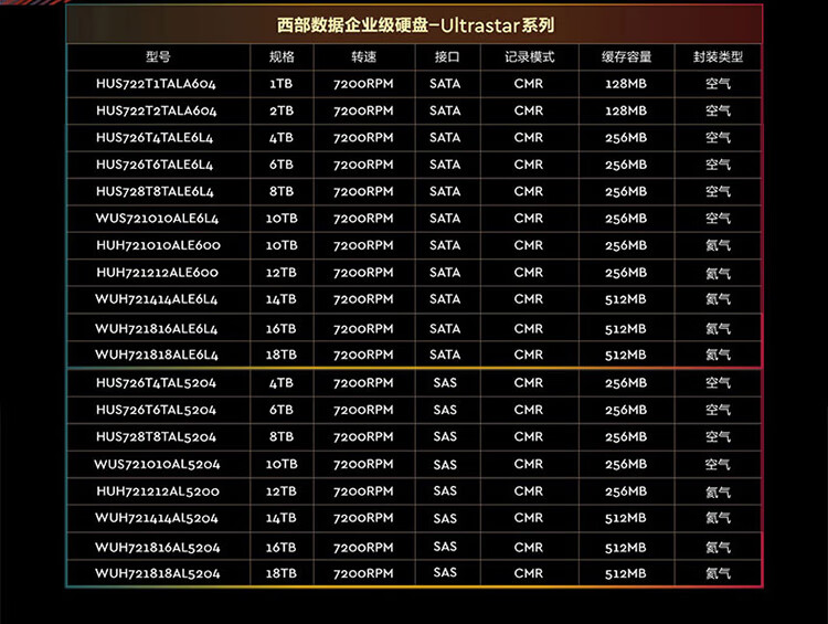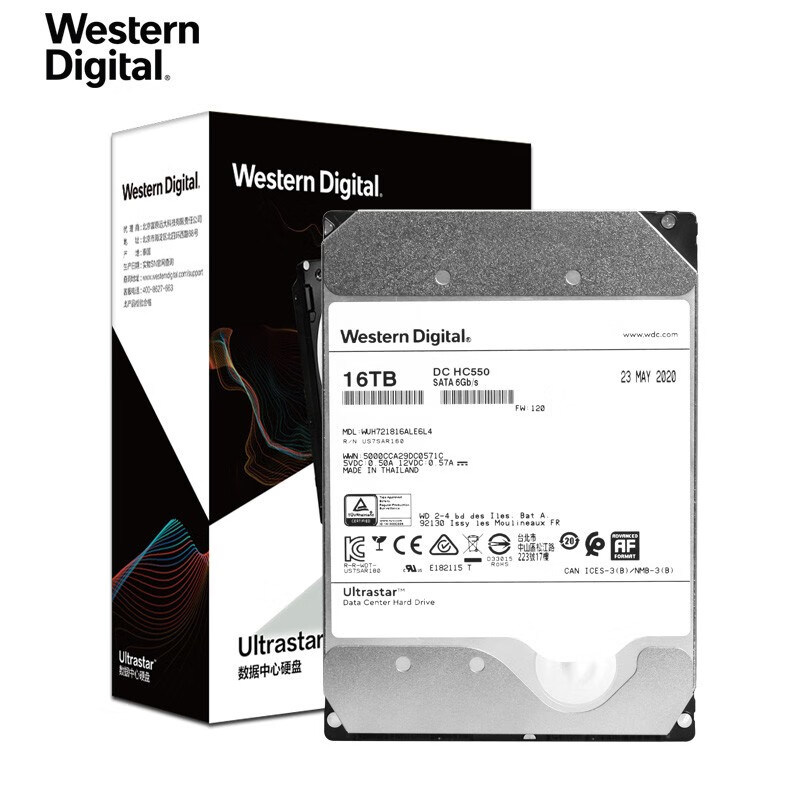 西部数据(Western Digital) 16TB 企业级硬盘 HC550 SATA6Gb/s 7200转512M 氦气密封 (WUH721816ALE6L4) 自营