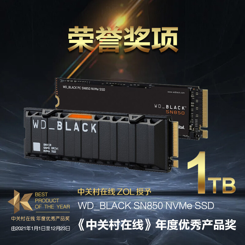 西部数据(Western Digital)1T SSD固态硬盘 M.2接口(NVMe协议) WD_BLACK SN850 PCIe Gen4 高速 大容量 自营
