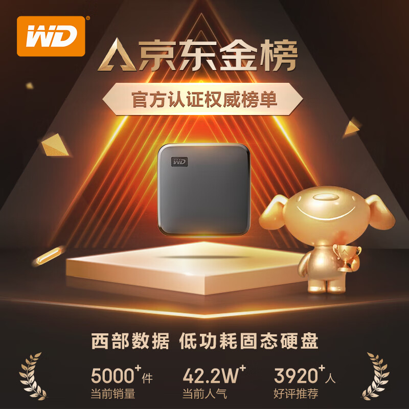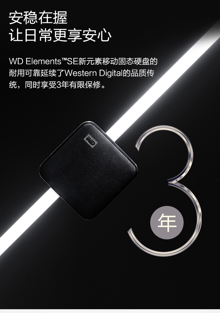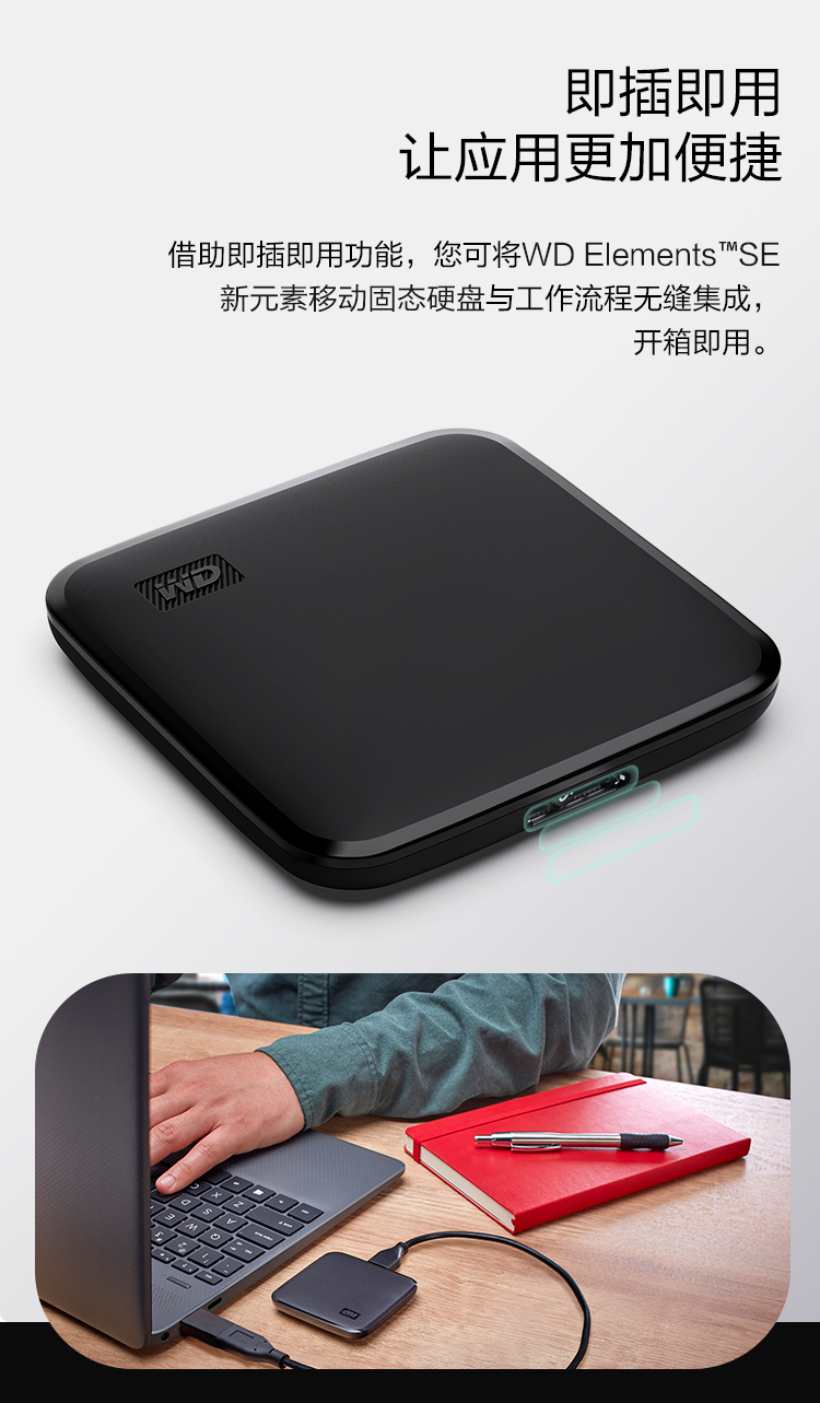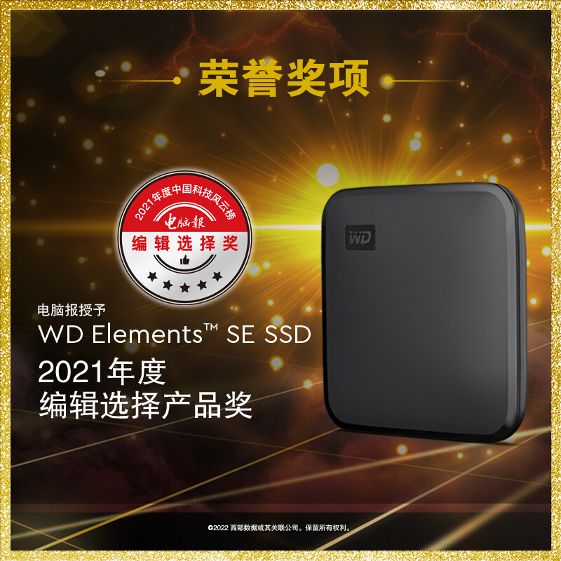 西部数据(WD) 1TB 移动固态硬盘(PSSD)Elements SE新元素 SSD USB3.2接口 便携 小巧耐用 坚固防震 兼容Mac 自营
